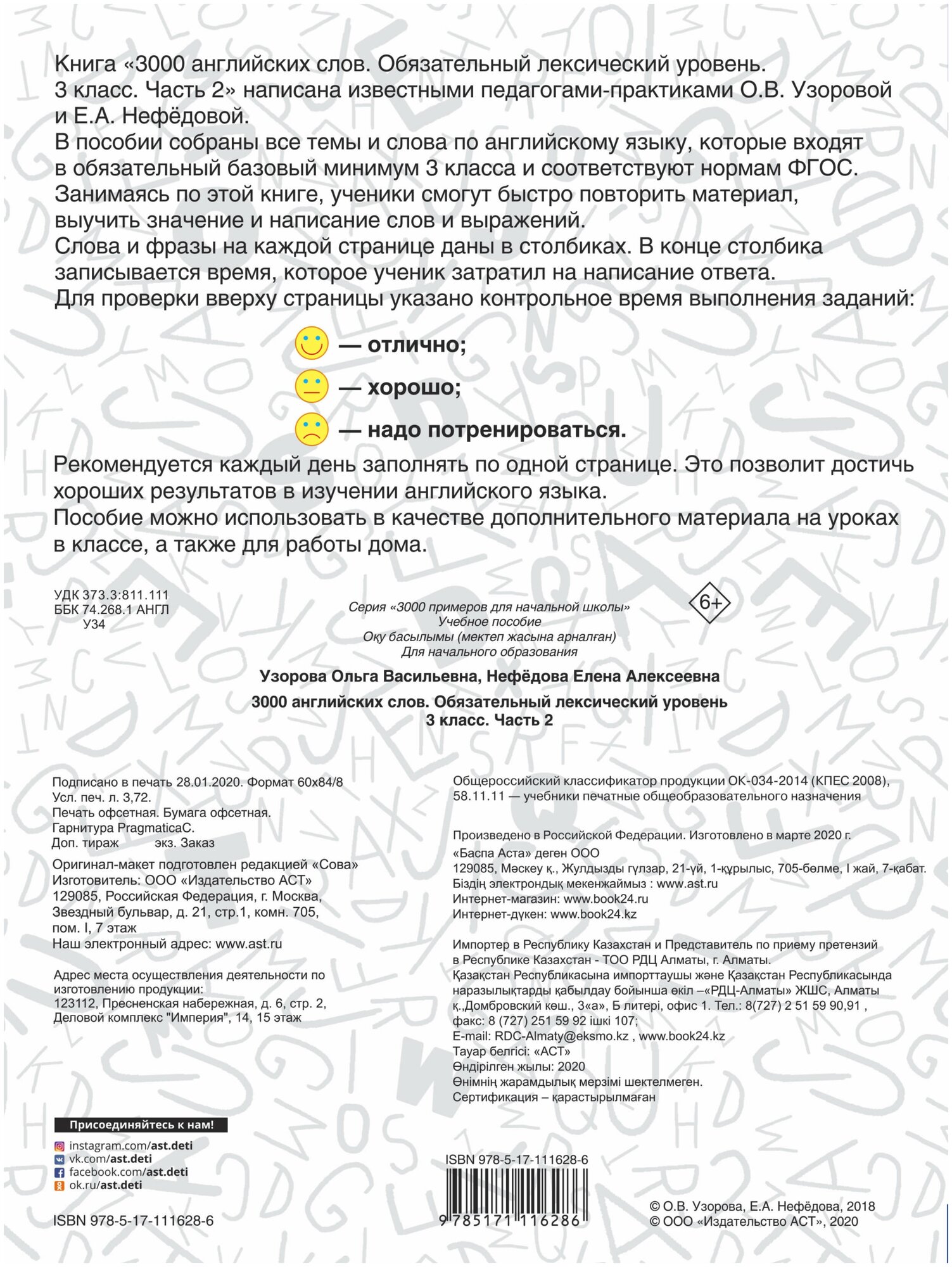 3000 английских слов Обязательный лексический уровень 3 класс Часть 2 (Узорова Ольга Васильевна, Нефёдова Елена Алексеевна (соавтор), Нефёдова Елена Алексеевна); АСТ, 2019