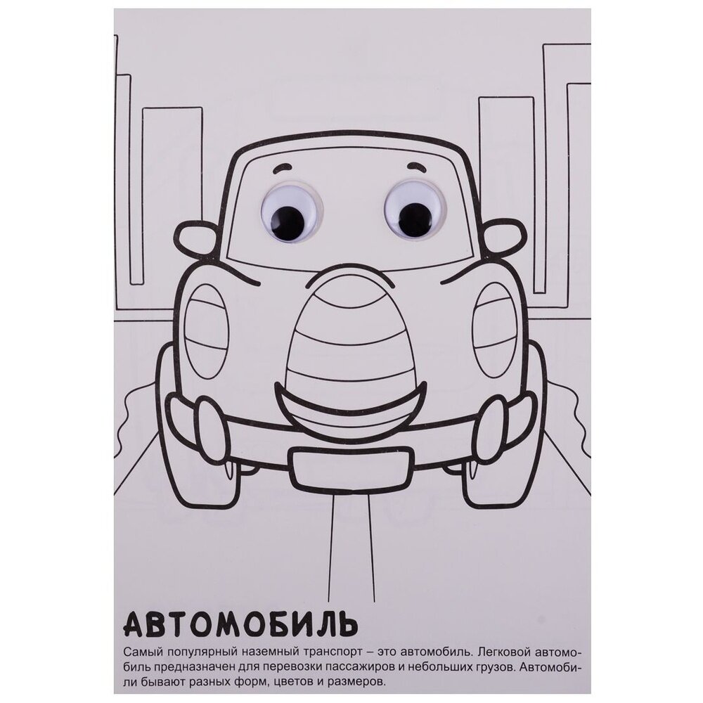 Серия занимательных раскрасок с глазками отлично подойдёт для малышей, которые начинают знакомиться с окружающим миром. На страницах этих раскрасок ребёнка ждут не только симпатичные «глазастые» картинки, которые интересно раскрашивать, но и краткие рассказы о различных животных, насекомых-букашках и транспорте. Рисуйте, читайте, фантазируйте!