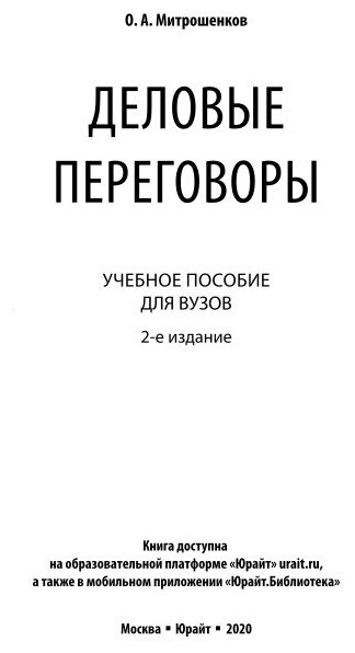Деловые переговоры Учебное пособие для академического бакалавриата (О. А. Митрошенков); ЮРАЙТ, 2019
