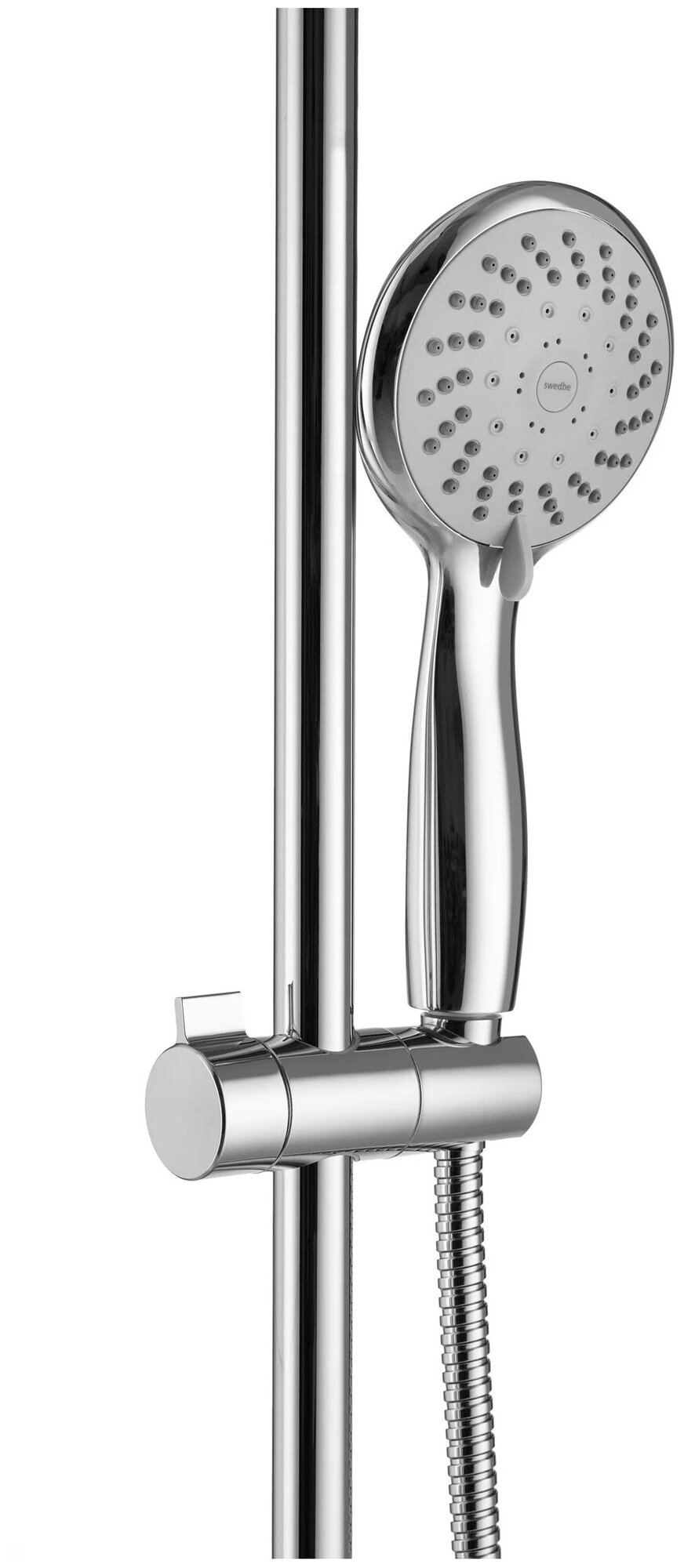 Семейный душ Swedbe Harmony исполнен в лучших традициях шведского дизайна. За счёт шарнирного латунного узла в основании верхней лейки можно направить струи воды под нужным наклоном: Вы не будете зависеть от того, насколько далеко установлен душ от стены, и от геометрии его изгиба. На душевом диске ручной лейки установлен переключатель режимов распыления воды. Пять типов струй подарят весь спектр ощущений — от обволакивающего кожу мелкодисперсного тумана до приятного тонизирующего массажного эффекта.