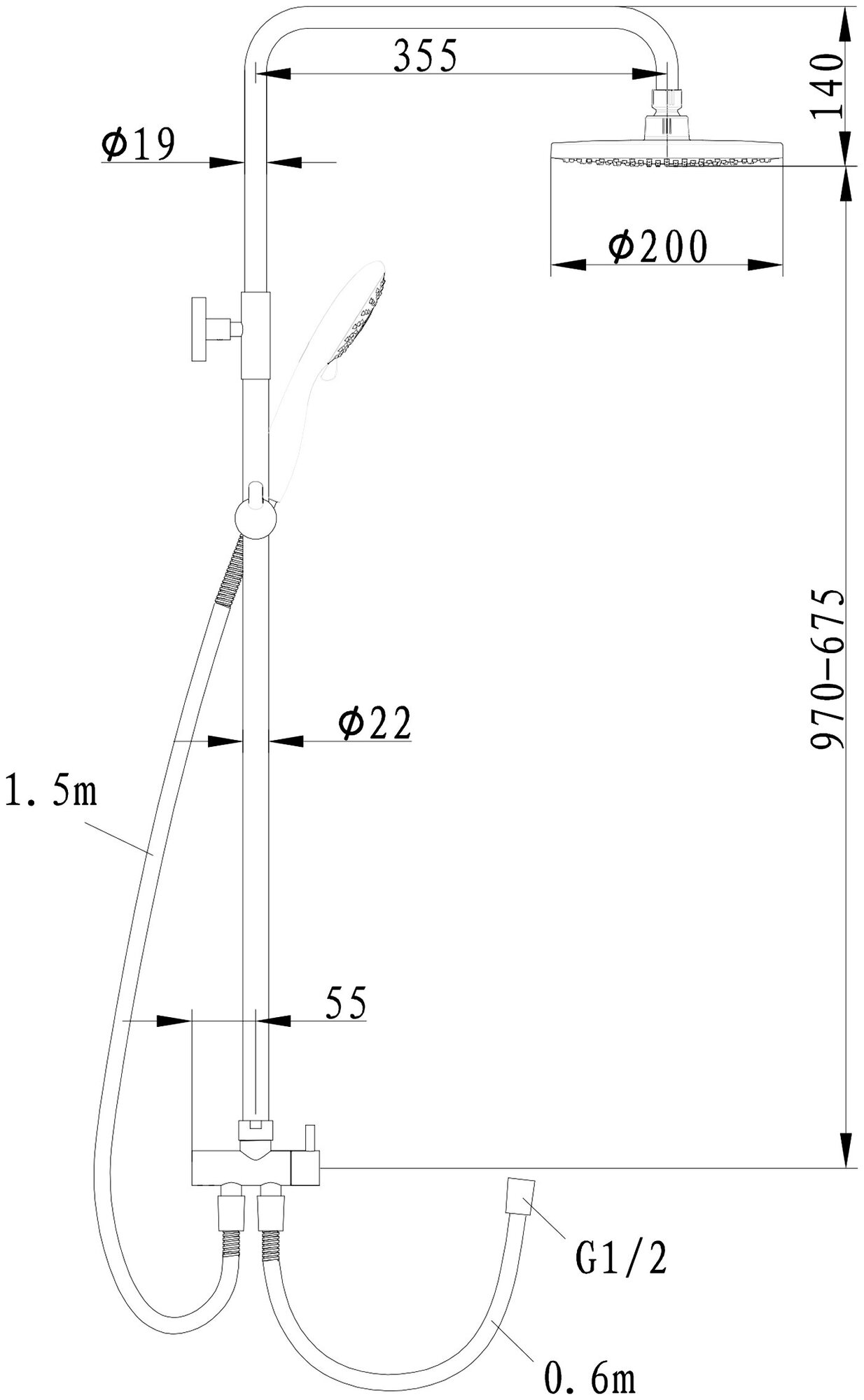 | Комплектация | Верхняя душевая насадка - 200 мм,латунные трубки с возможностью регулировки высоты,ручной душ 5 режимов,PVC c металлической структурой шланг полимерный 1,5 м с системой против скручивания, (подключение к смесителю сверху и снизу),мыльница |