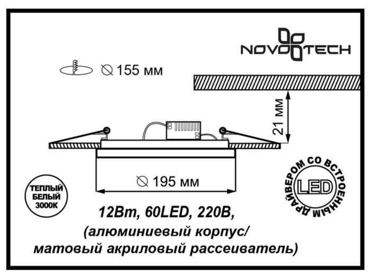 | Назначение | Встраиваемый светодиодный светильник со встроенным драйвером |