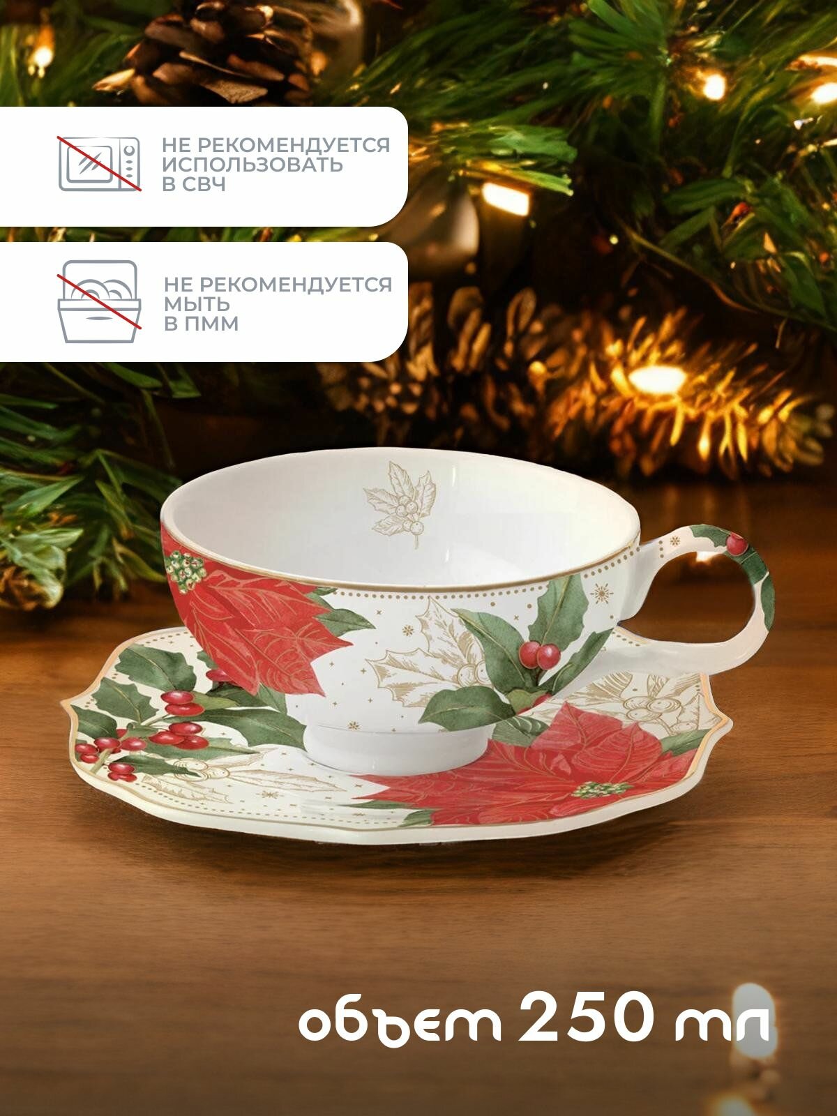 Чайная пара Easy Life Пуансеттия и ягоды из фарфора 250 мл создаст незабываемую атмосферу и позволит насладиться чашкой ароматного чая в любое время дня. Приятный на ощупь и элегантный по дизайну, она обладает прекрасной комбинацией форм и линий, придающих ему изысканность и изящество.Чашка и блюдце в наборе прекрасно согласуются друг с другом, создавая гармоничное целое. Качественный фарфор обеспечивает высокую прочность и долговечность, что позволит наслаждаться этим прекрасным подарком долгие годы.Независимо от того, кому вы решили подарить этот набор, будь то ваша мама, подруга или коллега, он станет прекрасным проявлением заботы и внимания к их комфорту и удовольствию. Будь то утренний кофе в постели, уютный завтрак в кругу семьи или чашка чая в офисе, этот набор украсит любое мероприятие, придавая ему неповторимый шарм и стиль.Благодаря своему элегантному внешнему виду и высокому качеству, эта чайная пара идеально подойдет в качестве подарка на такие особые события, как Новый год и Рождество. Он станет не только функциональным предметом в быту, но и символом заботы и внимания к близкому человеку. Комплектация: Чашка 0,25 л, блюдце 16 см.