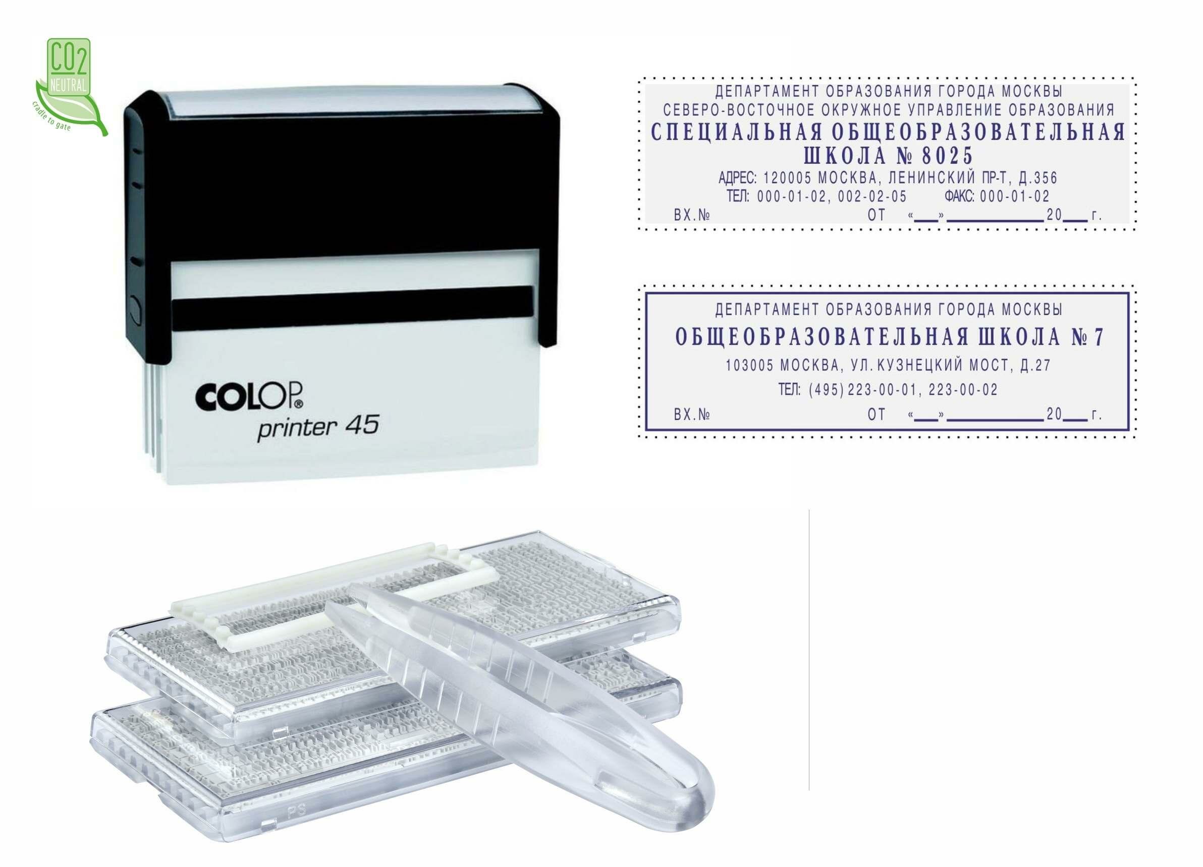 Самонаборный штамп автоматический COLOP оттиск 82 х 25 мм шрифт 3.1 мм прямоугольный PRINTER C45 SET-F