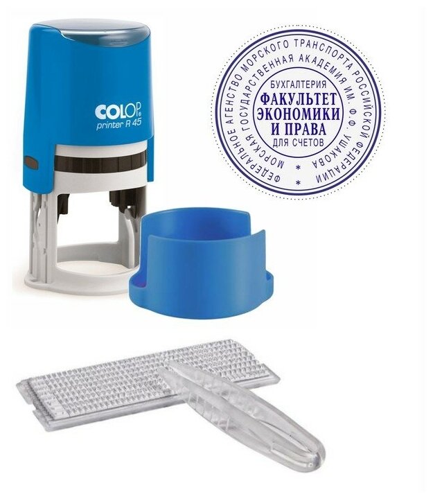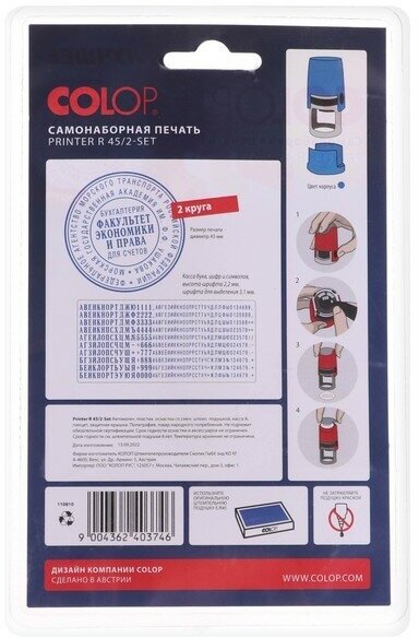Печать самонаборная автоматический COLOP оттиск 45 мм шрифт 3.1 мм 2 круга текста круглый PRINTER R 45/2-SET