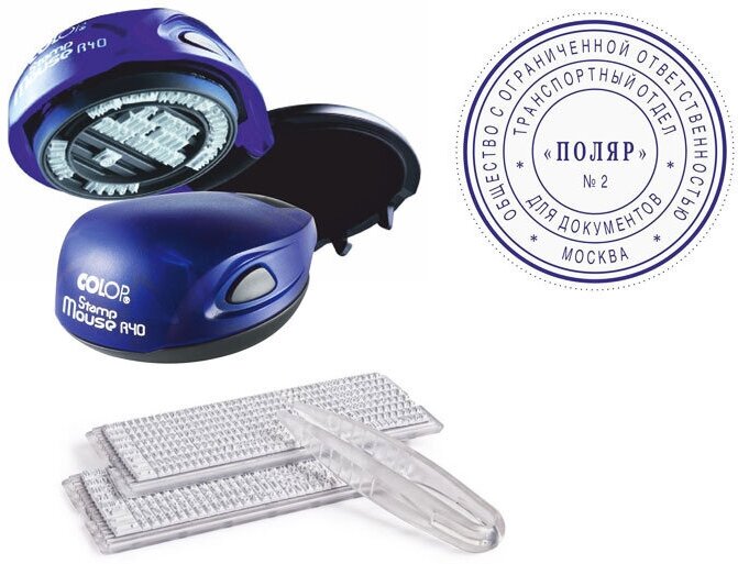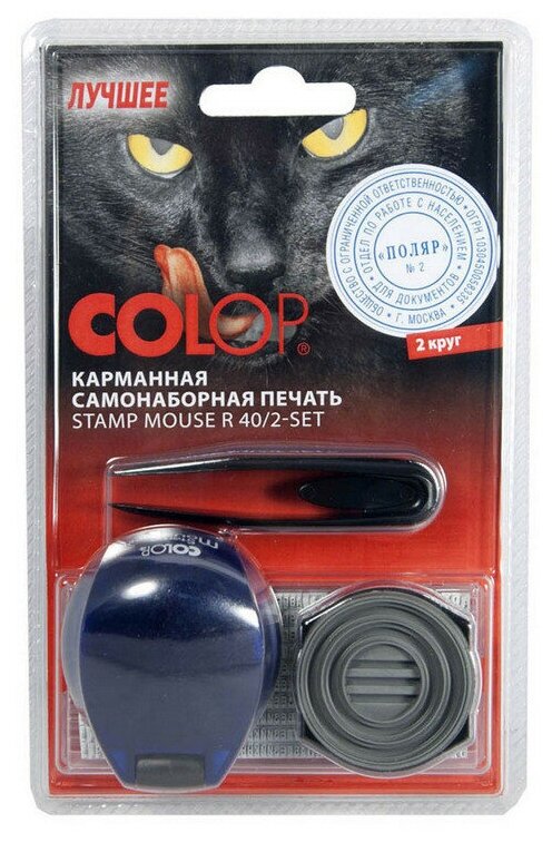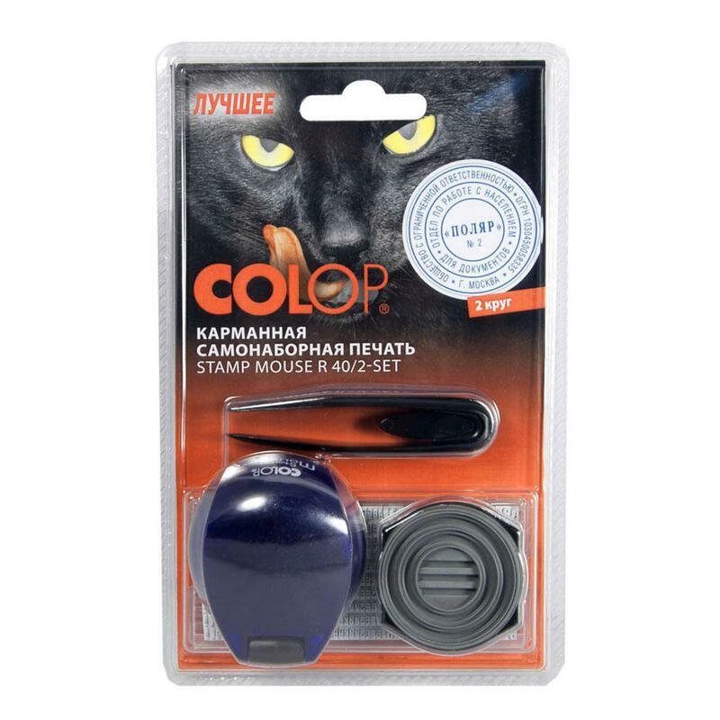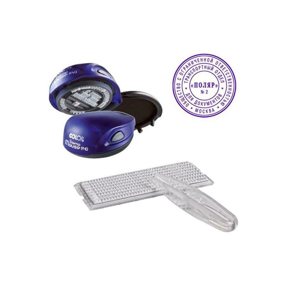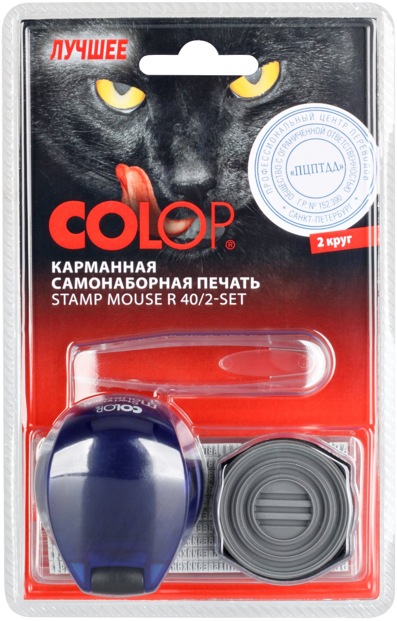 Печать самонаборная COLOP оттиск 40 мм шрифт 3.1 мм 2 круга текста круглый STAMP MOUSE R40/2 SET