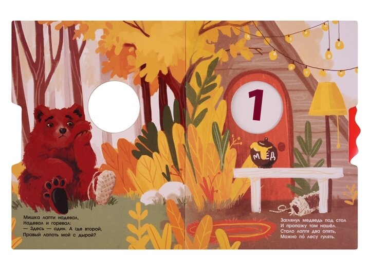 В целом очень хорошая книга-игра: интересная задумка, мягкие акварельные рисунки, простенькие стишки. Ребенку 1,9 нравится крутить колесико, так и цифры пытаемся учить, и пальчики развиваем.