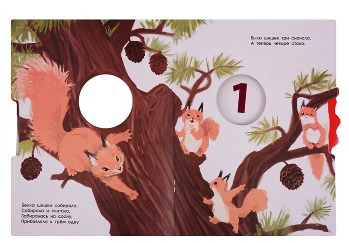 Очень понравились иллюстрации, животные красивые, ребенку нравится рассматривать и указывать их в книжке, стихи тоже легко читать. Книга очень тоненькая, 5 разворотов по цифрам в рулетке и листочки тонюсенькие. Большой минус, что рулетка не спрятана внутрь какого-нибудь кармана, крепится к последнему развороту и ее очень легко оторвать маленьким ручкам. Также смутило направление листания колесика, интуитивно оно должно листаться вниз на увеличение цифр, по часовой стрелке, а тут в обратную сторону (хоть начинай читать с конца?????+?). Моя малышка пока не обращает внимания на крутилку (1,6г), но если бы играла, то недолго: неудобно и хлипко. Картинки красивые, но совершенно нефункционально.