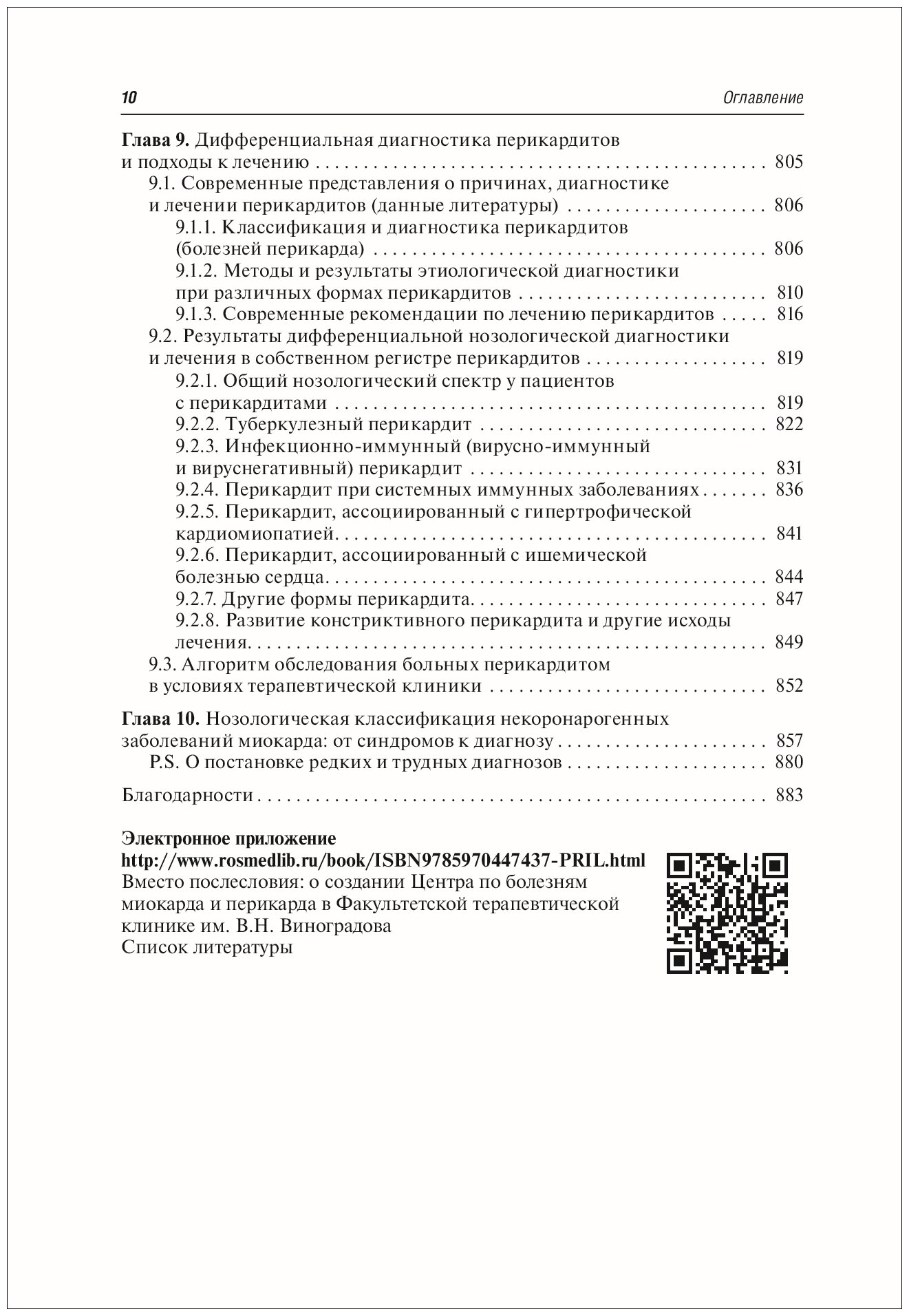 Предложена единая авторская классификация некоронарогенных заболеваний сердца, в том числе аритмогенной дисплазии правого желудочка и некомпактного миокарда. Подробно изложены принципы и результаты лечения, в том числе противовирусной и иммуносупрессивной терапии миокардитов. Наряду с фундаментальными результатами в особых разделах сжато сформулированы разработанные авторами практические рекомендации по диагностике и лечению.