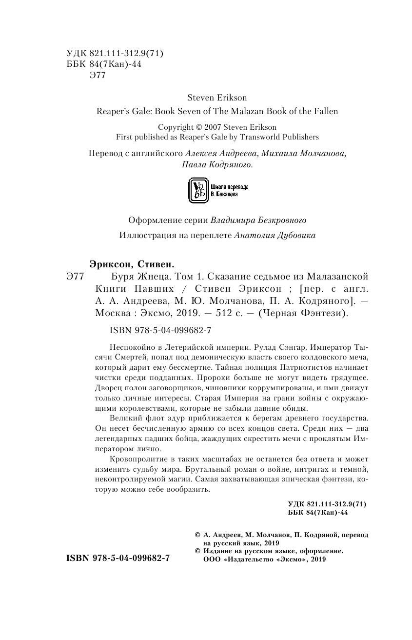 Книга: Буря Жнеца. Том 1 (Андреев Алексей Викторович (переводчик), Кодряной П. (переводчик), Молчанов Михаил (переводчик), Эриксон Стивен); Эксмо, 2019