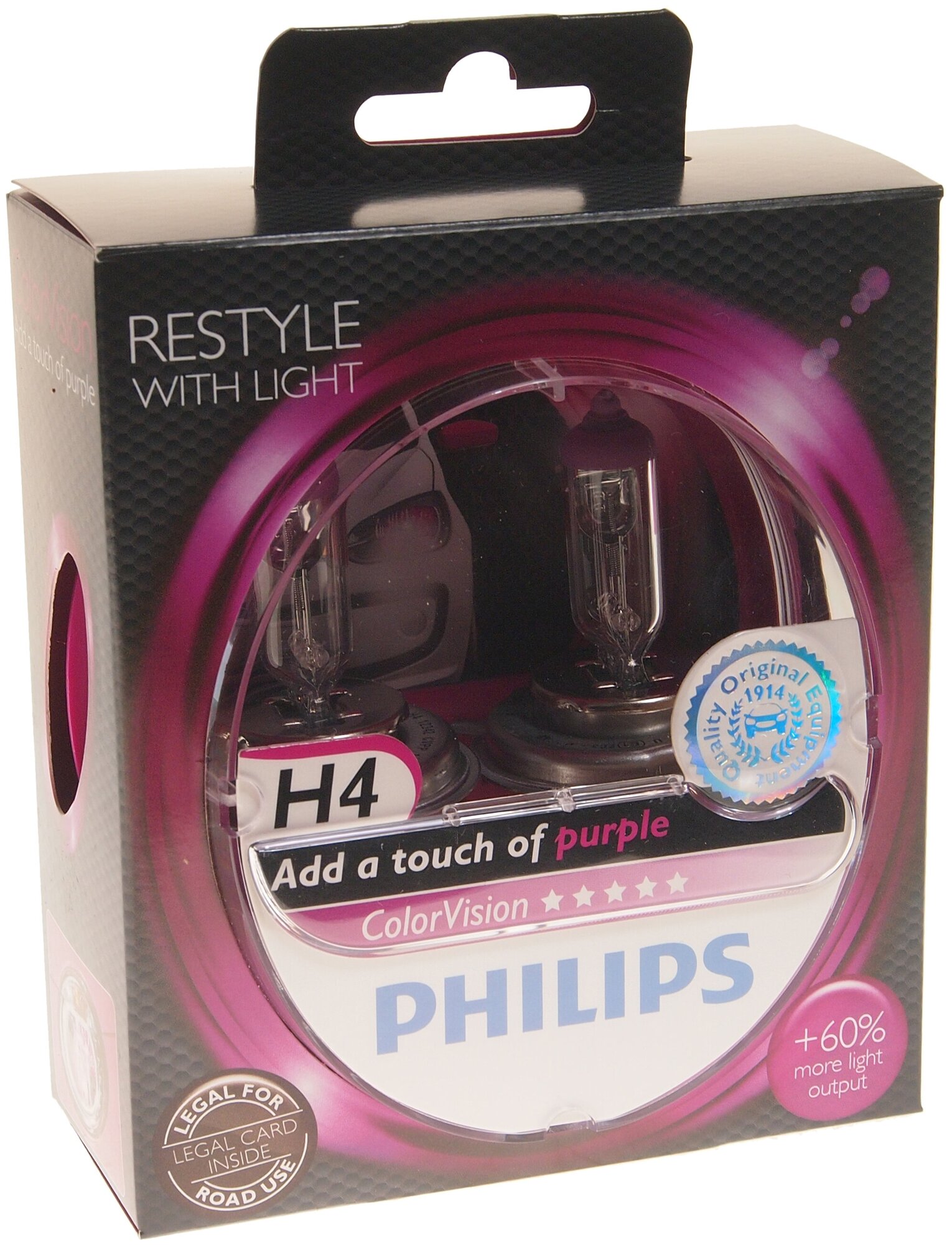 Philips Добавьте яркие акценты с помощью Philips ColorVision, выбрав голубой, зеленый, желтый или фиолетовый цвет. Philips ColorVision отражают свет, направляя его через оптические элементы и создавая интересные цветовые эффекты. Доказано, что хорошая видимость улучшает реакцию водителя. ColorVision обеспечивают видимость на 60 % лучше или на 25 метров дальше (по сравнению с обычными лампами). Благодаря специальному покрытию лампы Philips ColorVision создают цветной эффект. Они соответствуют европейским стандартам и обеспечивают прекрасное освещение, излучая безопасный белый свет. Кварцевое стекло, устойчивое к УФ-излучению, обладает более высокой прочностью (по сравнению с тугоплавким стеклом) и отличается высокой устойчивостью к перепадам температур и вибрации, что исключает возможность взрыва. Лампы Philips из кварцевого стекла (нить накаливания 2650 ?C и стекло 800 ?C) способны выдержать резкие колебания температуры. Высокое давление внутри колбы обеспечивает более мощный свет. Специальное разработанное Philips покрытие предохраняет фары от вредного ультрафиолетового излучения, что делает кварцевое стекло Philips идеальным вариантом для всех условий вождения и гарантирует его долговечность.