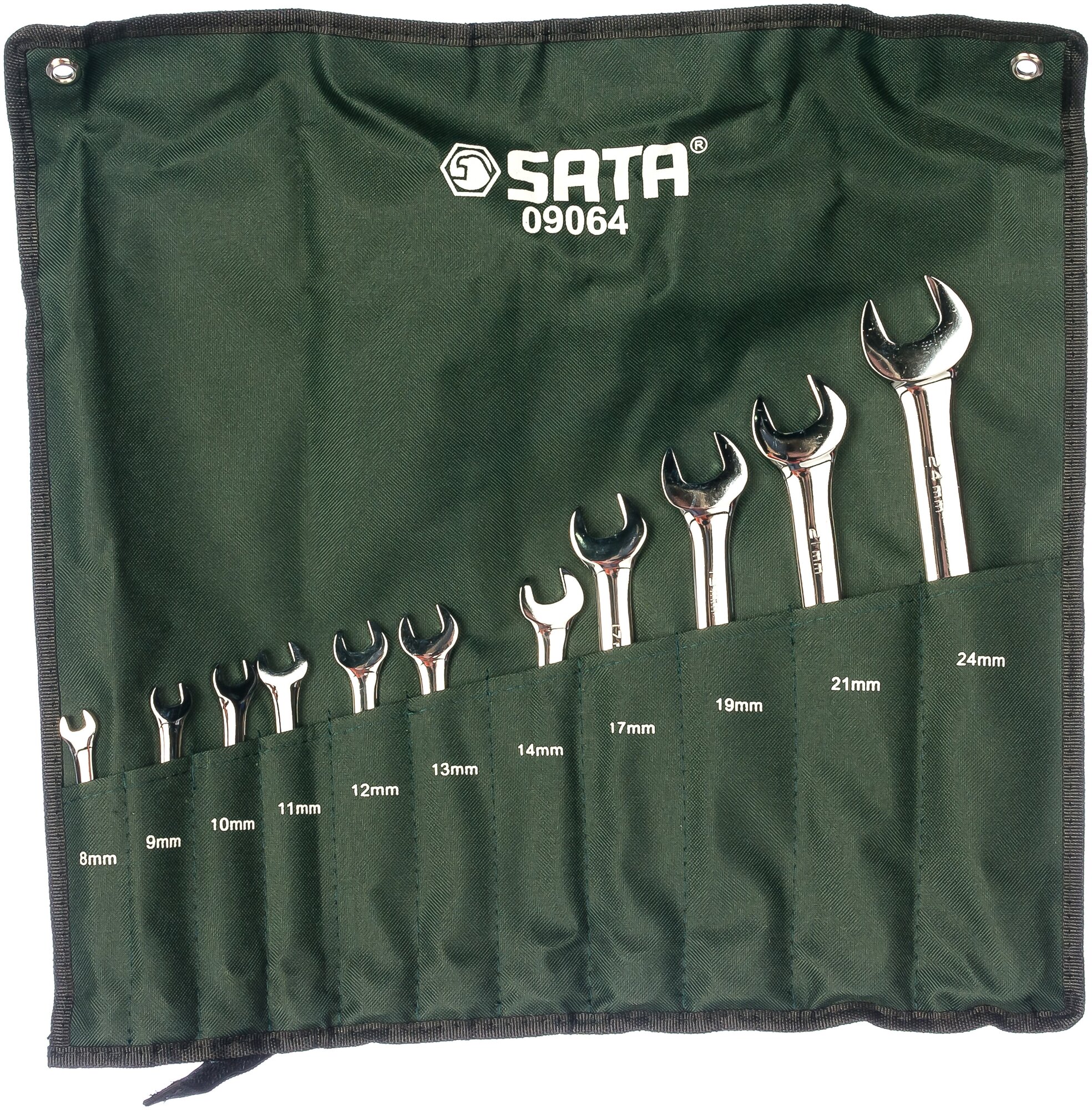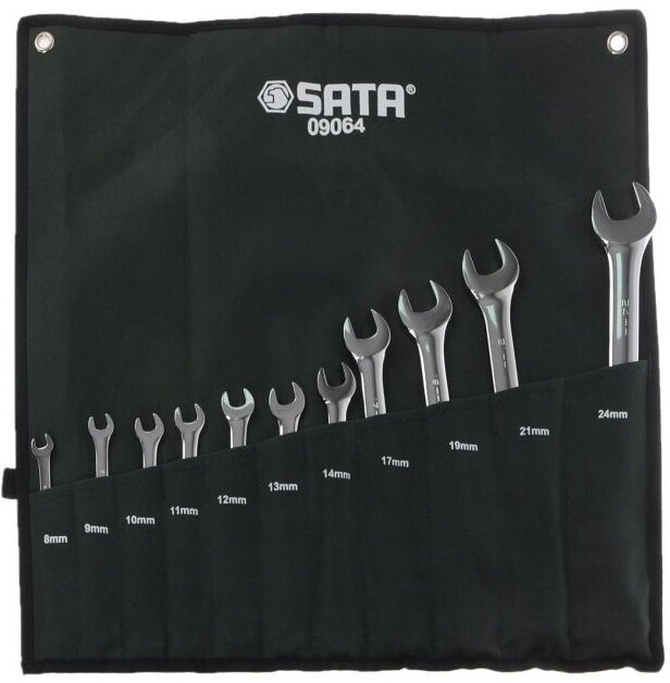 Набор комбинированных ключей 11шт Sata активно применяется в сфере ремонтно-сборочных работ с использованием шестигранных крепежных элементов. Каждый компонент оснащен кольцевой и открытой рожковой головками для удобства выполнения монтажно-демонтажных операций в труднодоступных местах. Для сохранности комплектации ключей при хранении или транспортировке предусмотрен специальный чехол.