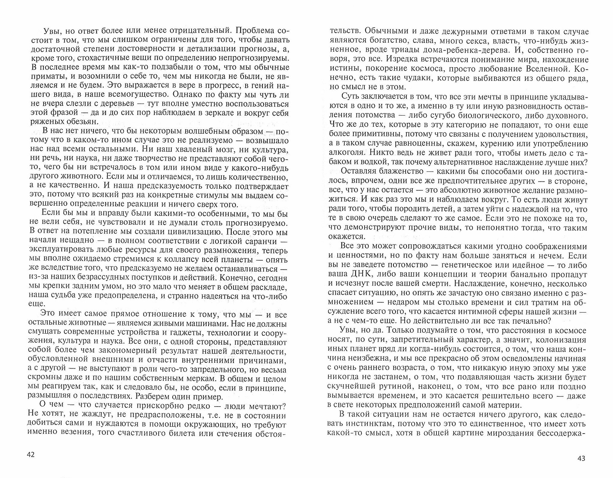 Монография посвящена следующему вопросу: можно ли рассматривать человека и, более широко, жизнь как нечто механичное и детерминированное своими устройством и физиологией? Как представляется, ответ на этот вопрос положительный, несмотря на то что преобладают концепции, наделяющие людей свободой воли, особым интеллектуальным потенциалом, наличием саморазвивающейся культуры и т.п. Ни наши чувства, ни поведение, ни даже мышление не являются чем-то, что было бы свободно и независимо от тех стимулов, которые воздействуют на нас. Напротив, они выступают в качестве реакций на внешние и внутренние события, которые более чем предсказуемы и ожидаемы. Таким образом, люди тоже есть живые машины, как и все остальные, ничем в этом смысле не отличаясь.