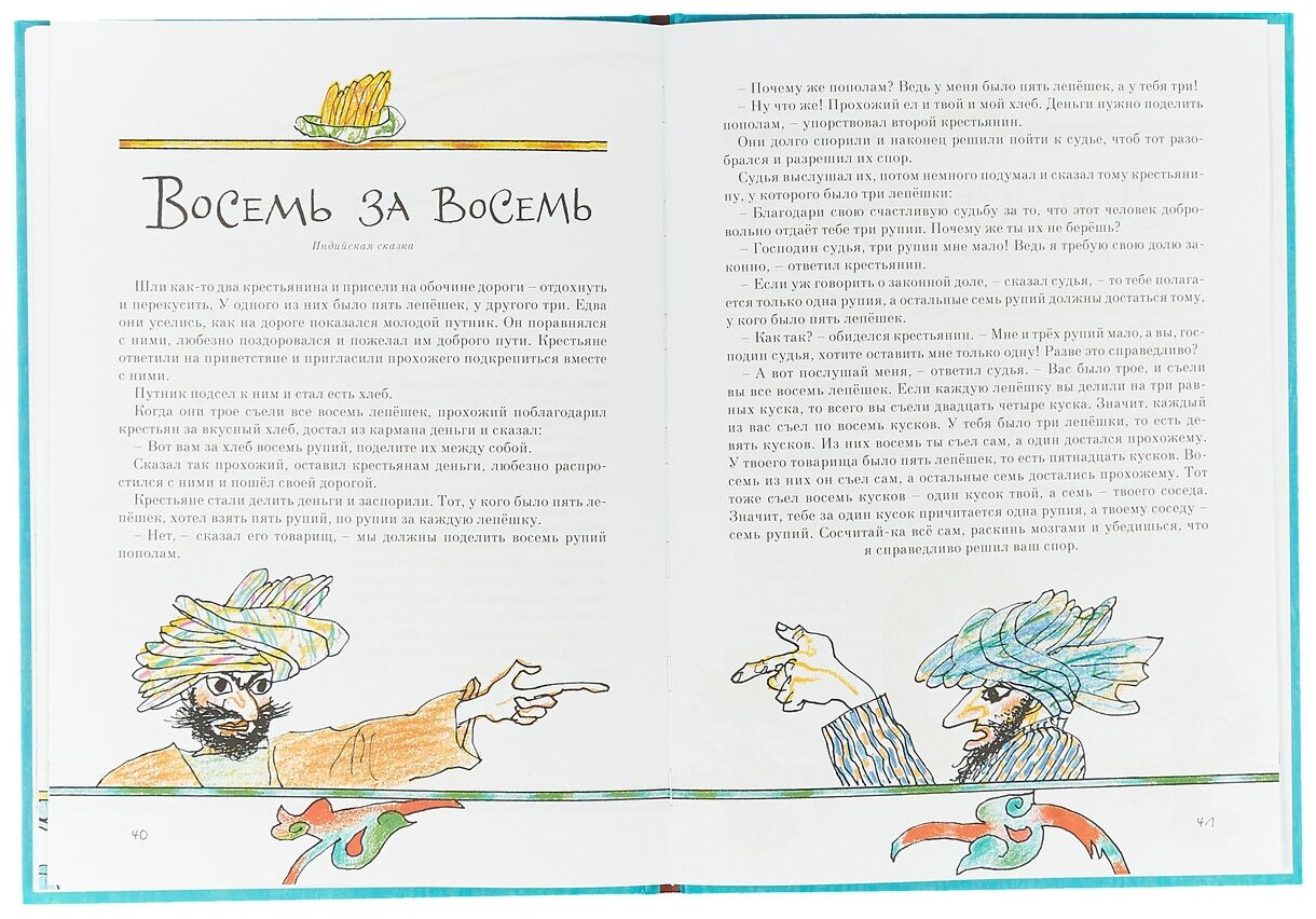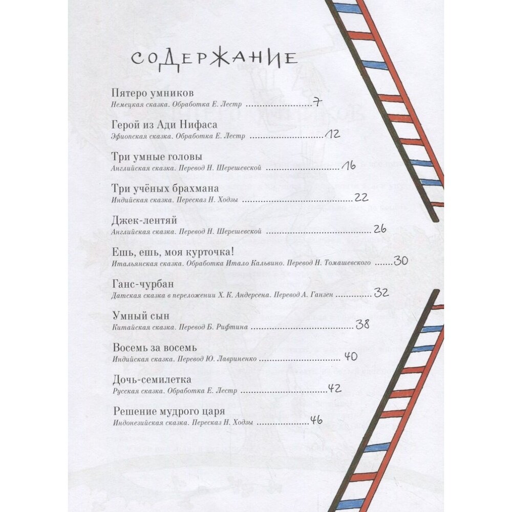 Эта книга доверху набита умниками самого разного толка. Вы найдёте здесь истории про умников, которые сами себя таковыми считают. Есть персонажи недалёкие, но простодушные, которые поступают не совсем разумно, но в конце концов оказываются в выигрыше. Есть сказки о простаках, чистых сердцем, которые всему верят, всё принимают за чистую монету. Попадаются учёные мужи и никогда не учившиеся природные мудрецы, чудаки, чьи мудрёные решения любого с ума сведут. Встречаются цари, которые не стесняются спрашивать совета у простолюдина, и дети, которые мудрее взрослых. В общем, сами увидите!