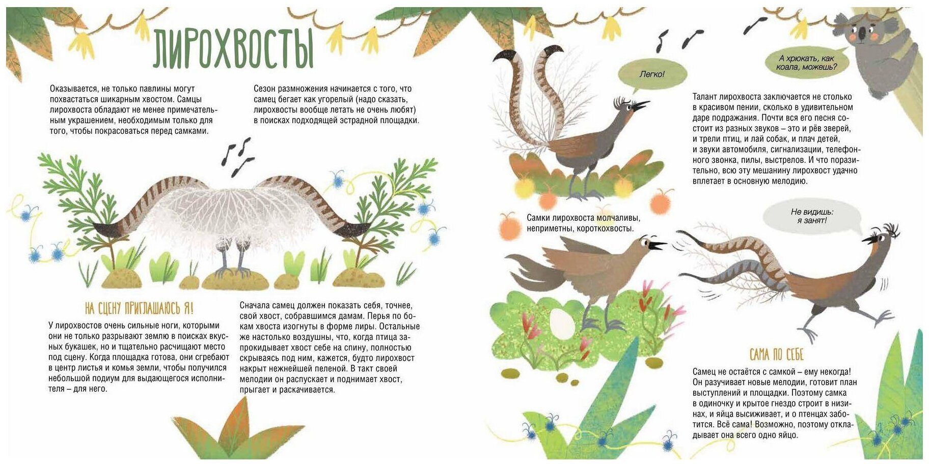 .Изучив эту книгу, не только дети, но и взрослые удивятся нашему сложному многообразному миру, а возможно и тому, что некоторые животные так похожи на нас своим поведением. Забавные рисунки Натальи Карповой и задорный текст побудят ребёнка и самому изучать другие виды животных и их удивительные повадки.