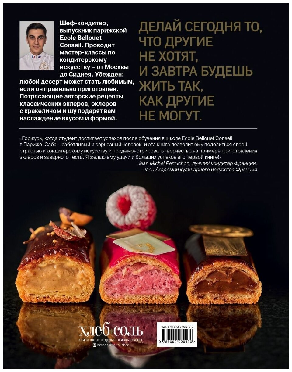Какой эклер выбрать? Давайте все! Потрясающие авторские рецепты шу, классических эклеров и эклеров с кракелином от шеф-кондитера, выпускника парижской школы кондитерского искусства, блогера и ведущего мастер-классов от Москвы до Сиднея Сабы Джанджгавы. Кофейный и вишневый, медовый и ягодный, грушевый татен и пралине. А как насчет соленого эклера "Мандарин - Утиный паштет"? Король эклеров угощает!