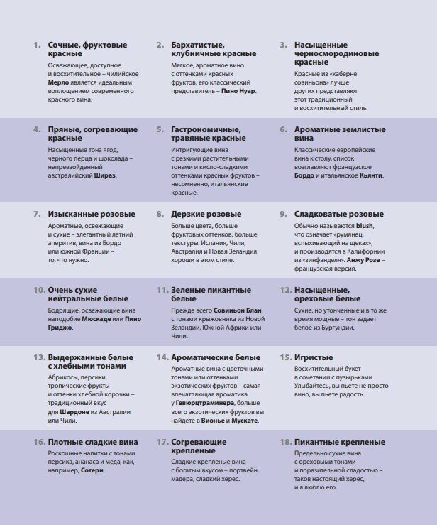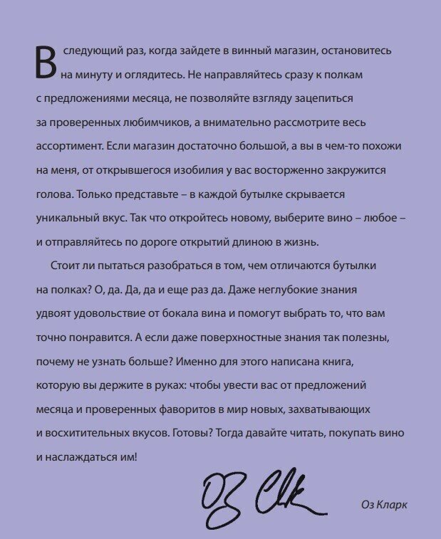 Книги Оза Кларка – это исчерпывающие справочники для винных новичков. Автор использует простые примеры и красочный язык, чтобы рассказать о прелестях и даже недостатках вин. В книге «Вино. Новый полный справочник» столько картинок и инфотекста, что сложно не начать разбираться в вине. Книга сопровождается фотографиями автора и разными другими цветными картинками.
