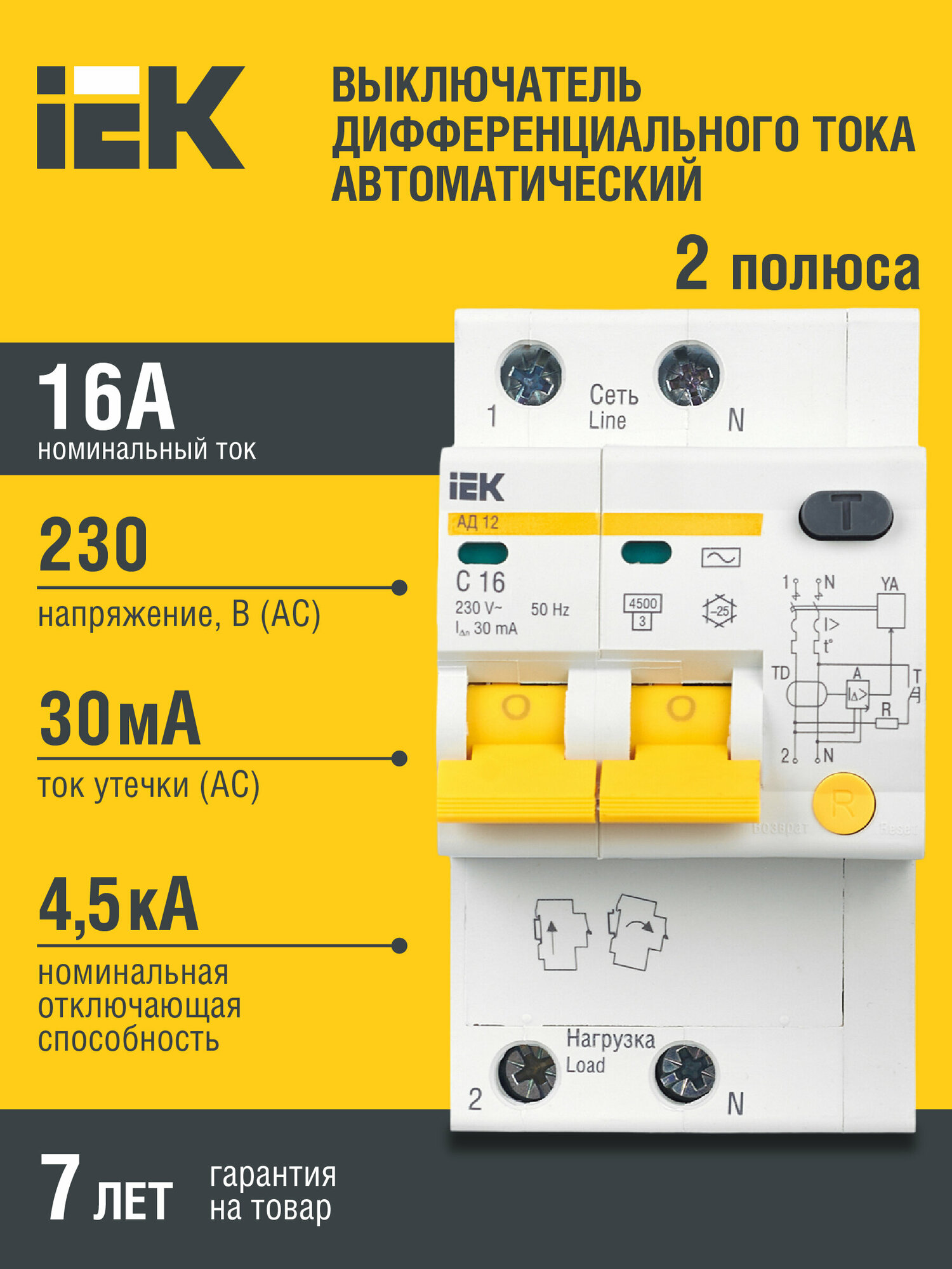 Диф. автомат Iek 2п 20А/30мА АД-12