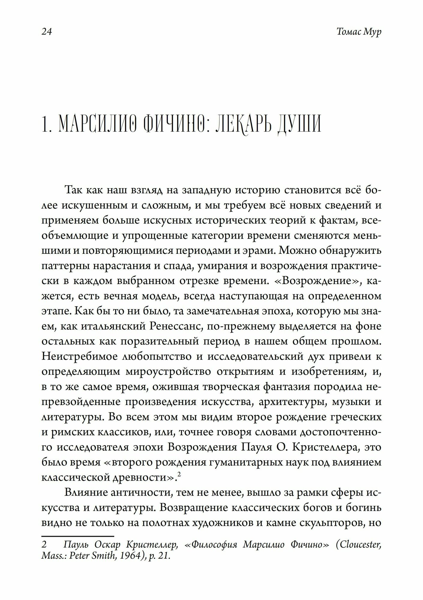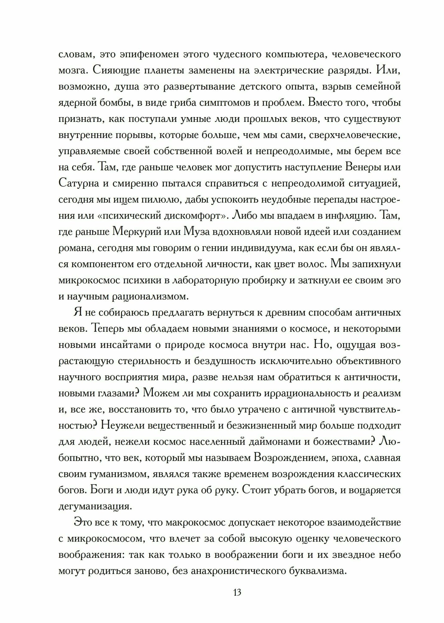 .Среди этих мастеров внутренней жизни ведущим был Марсилио Фичино, гений флорентийской Академии, который учил, что все вещи существуют в душе и должны быть прожиты на опыте. Это изучение Фичино расширяет и углубляет наше понимание психики, ведь Фичино был врачевателем души, и его озарения учат нас заботе и питанию души.