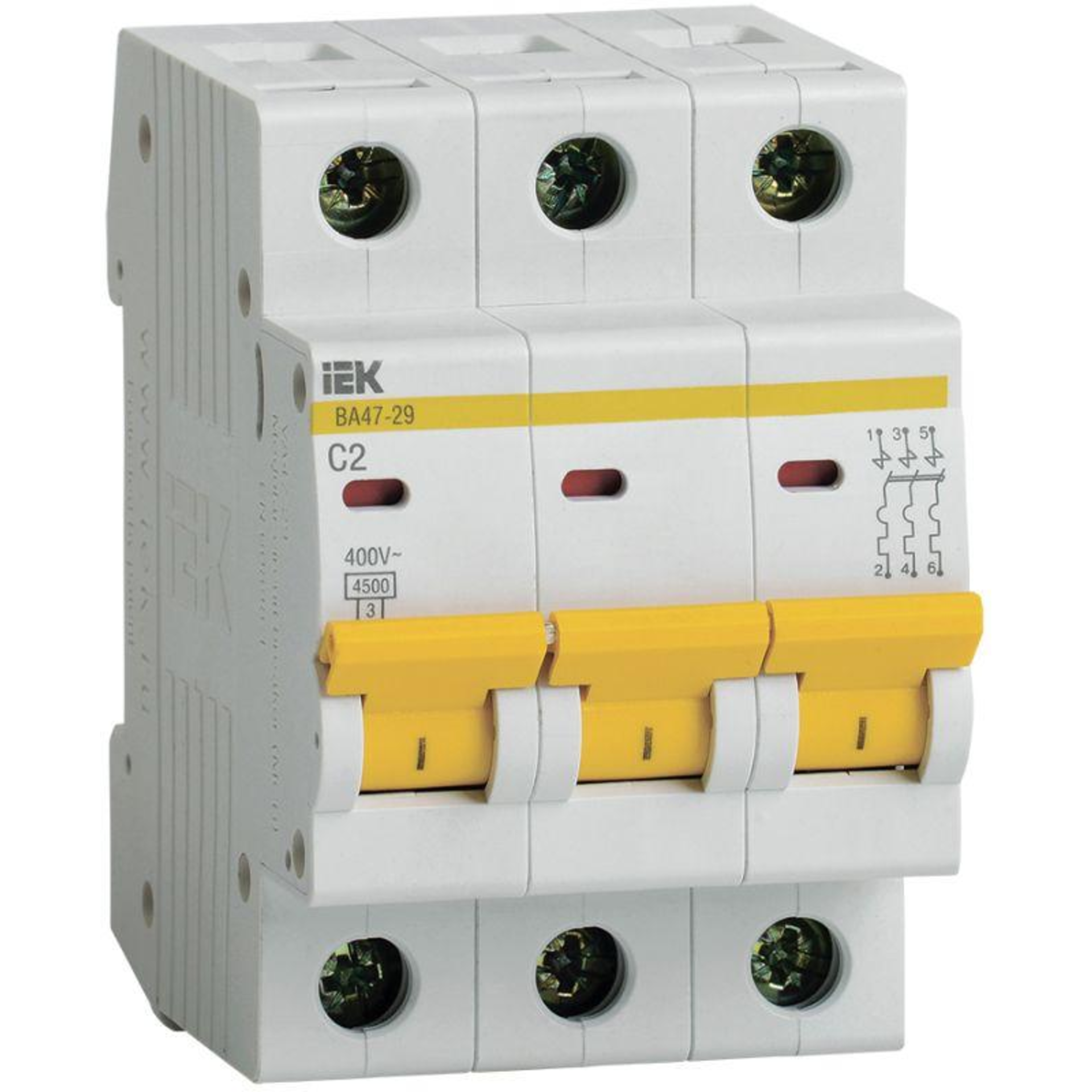 Автоматический модульный выключатель IEK ВА47-29 3п, 10А монтируется в любом положении в бытовых, офисных или промышленных помещениях. Применяется для защиты от перегрузок и коротких замыканий в электрических цепях. Три переключателя имеют подвижные контакты снабженные серебросодержащей напайкой, что обеспечивает надежность и долговечность конструкции. Тип характеристики соединения - С. Областью применения этого типа являются бытовые цепи, выполненные медными проводами.