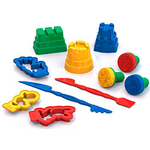 Наборы для лепки подходят для творческих игр с любым видом пластичного материала: от глины до "домашнего" песка. Элементы в наборе не имеют зазубрин, поэтому абсолютно безопасны даже для самых маленьких. С таким набором полет фантазии ничем не ограничен: ребенок может строить замки, создавать красивые узоры, вырезать фигурки и придумывать различные сюжетные сценки с их участием. Игрушка не только способствует веселому времяпрепровождению, но и развивает логику, фантазию, усидчивость, пространственное мышление, аккуратность и мелкую моторику рук.