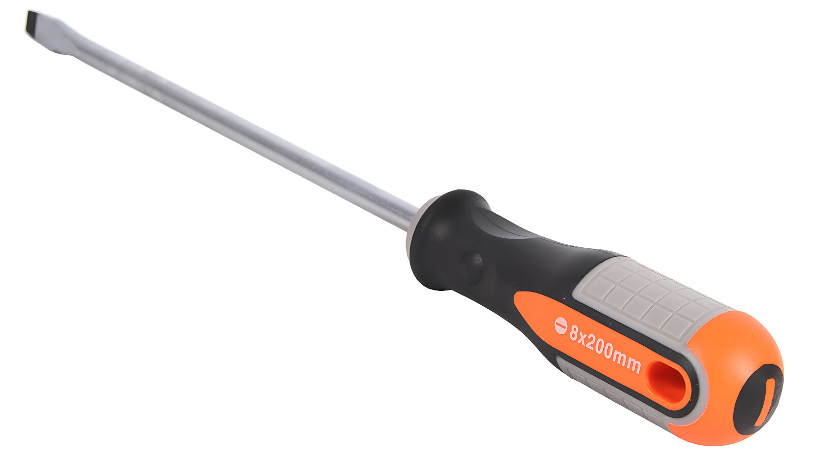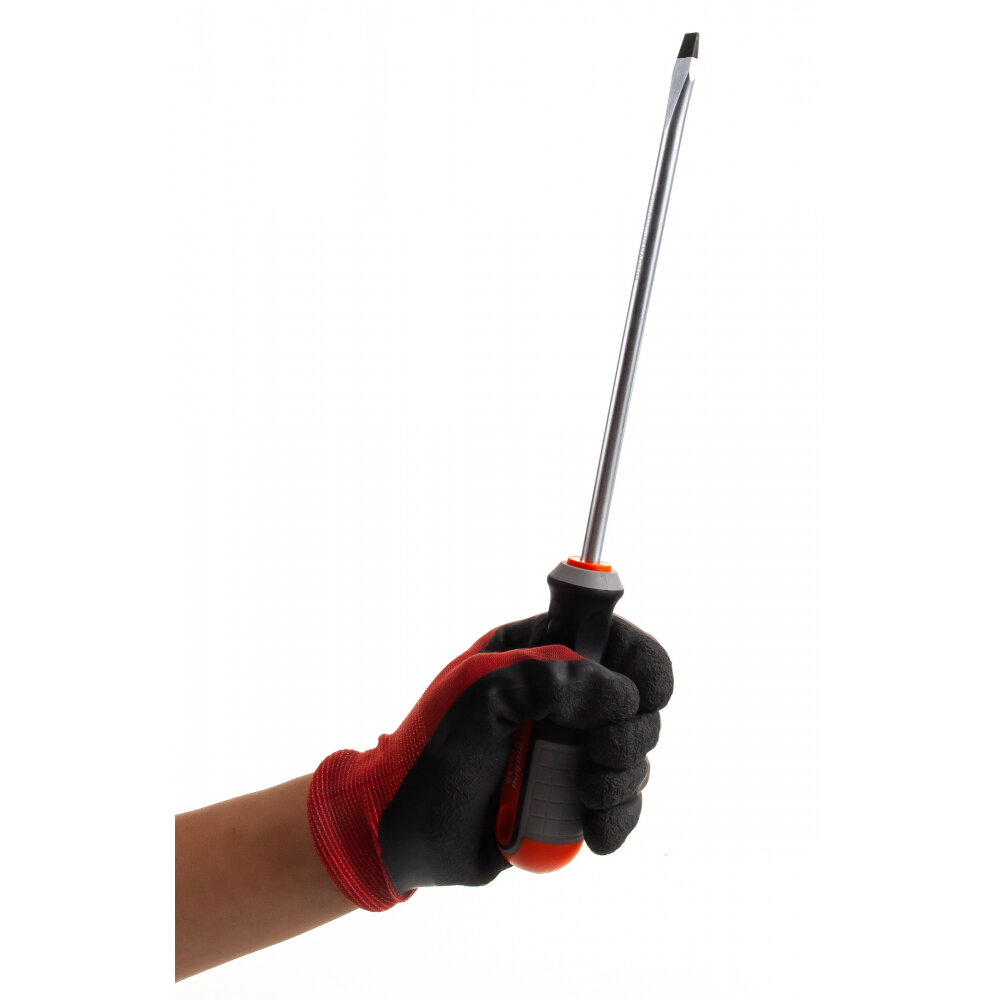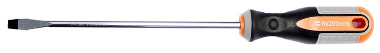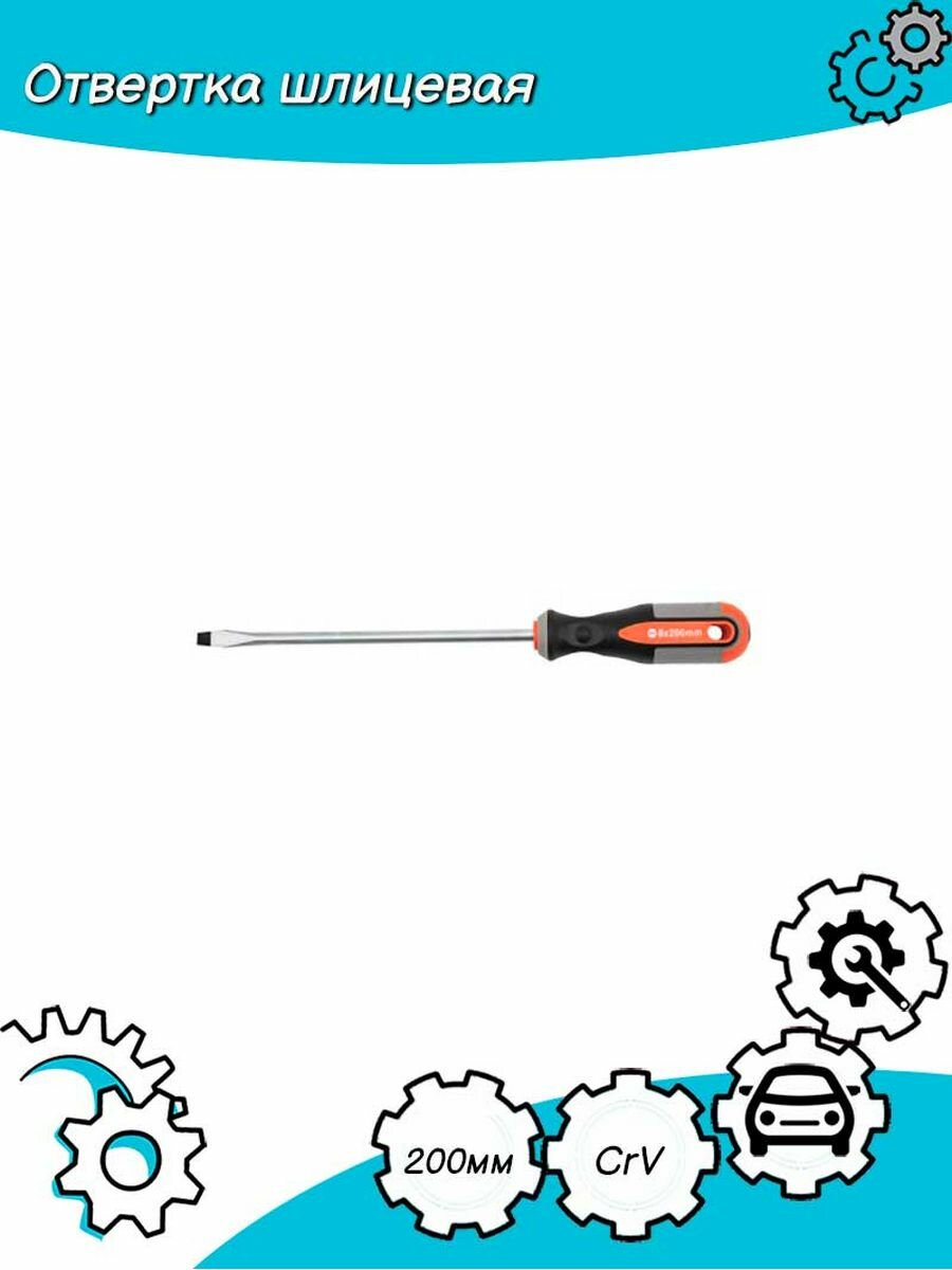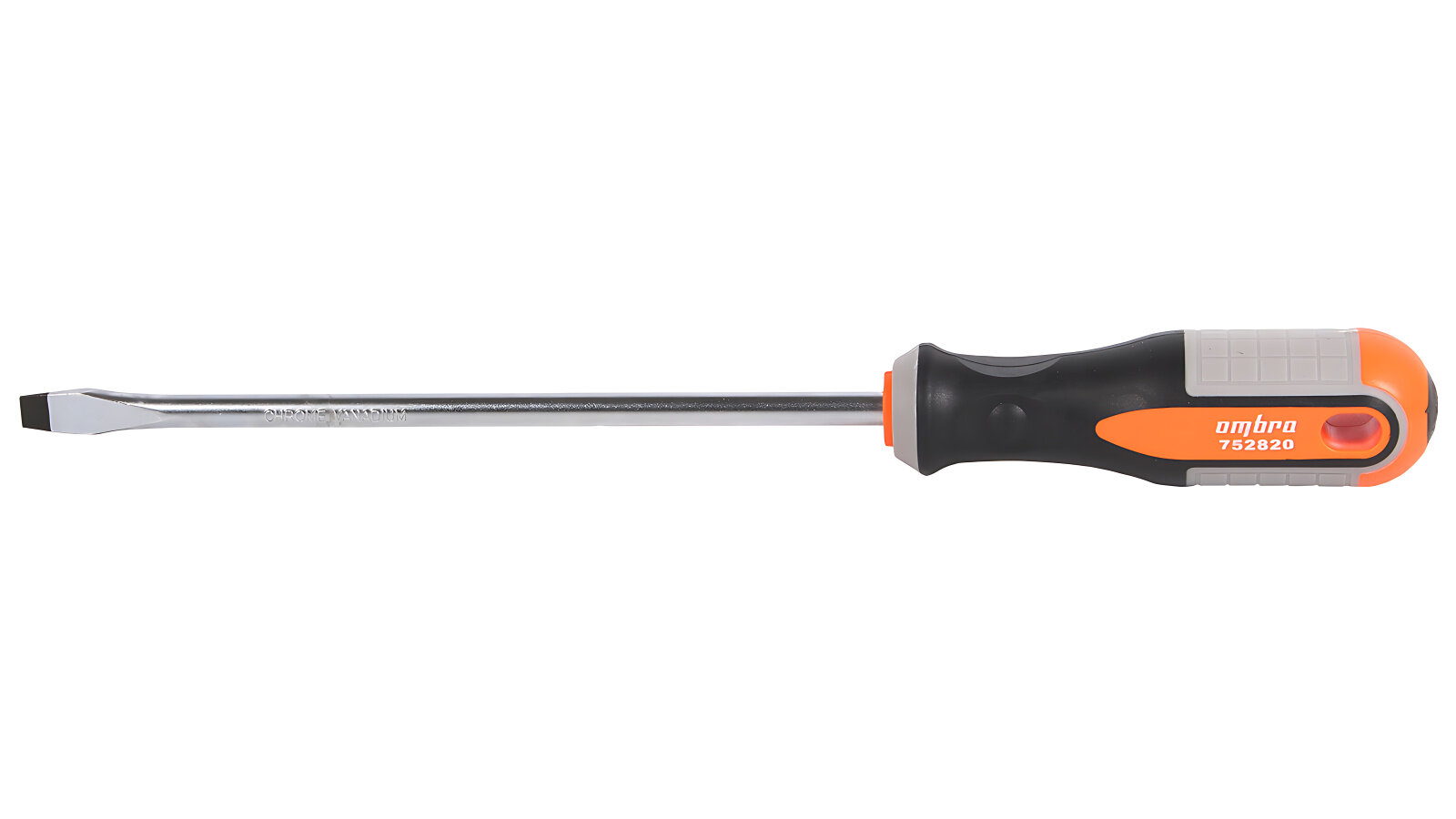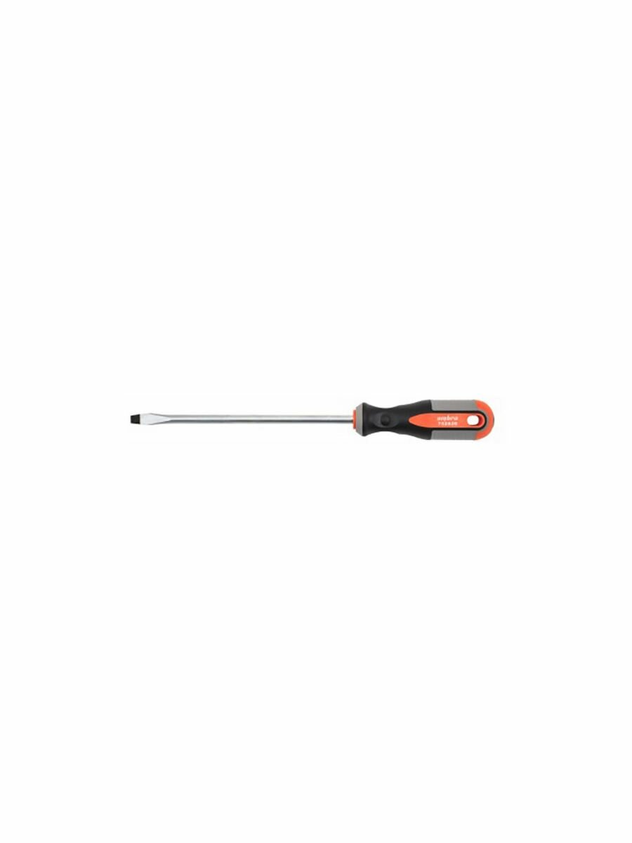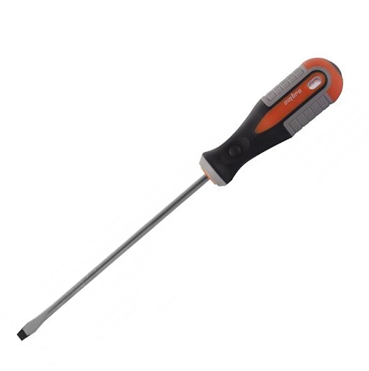 Стержневая шлицевая отвёртка Ombra с круглой рукояткой и длиной стержня 200 мм.Преимущества Эргономичная рукоятка: двухкомпонентная рукоять отвёртки обеспечивает удобный захват и предотвращает скольжение в руке, что снижает утомляемость при работе. Намагниченный наконечник: магнитный наконечник облегчает работу с крепежом, позволяя легко доставать винты из труднодоступных мест. Повышенная прочность: стержень отвёртки изготовлен из хромованадиевой стали, что обеспечивает высокую прочность и долговечность инструмента Безопасность и надёжность: двухкомпонентная рукоять и магнитный наконечник обеспечивают надёжное удержание отвёртки в руке и предотвращают случайное соскальзывание, снижая риск получения травмы