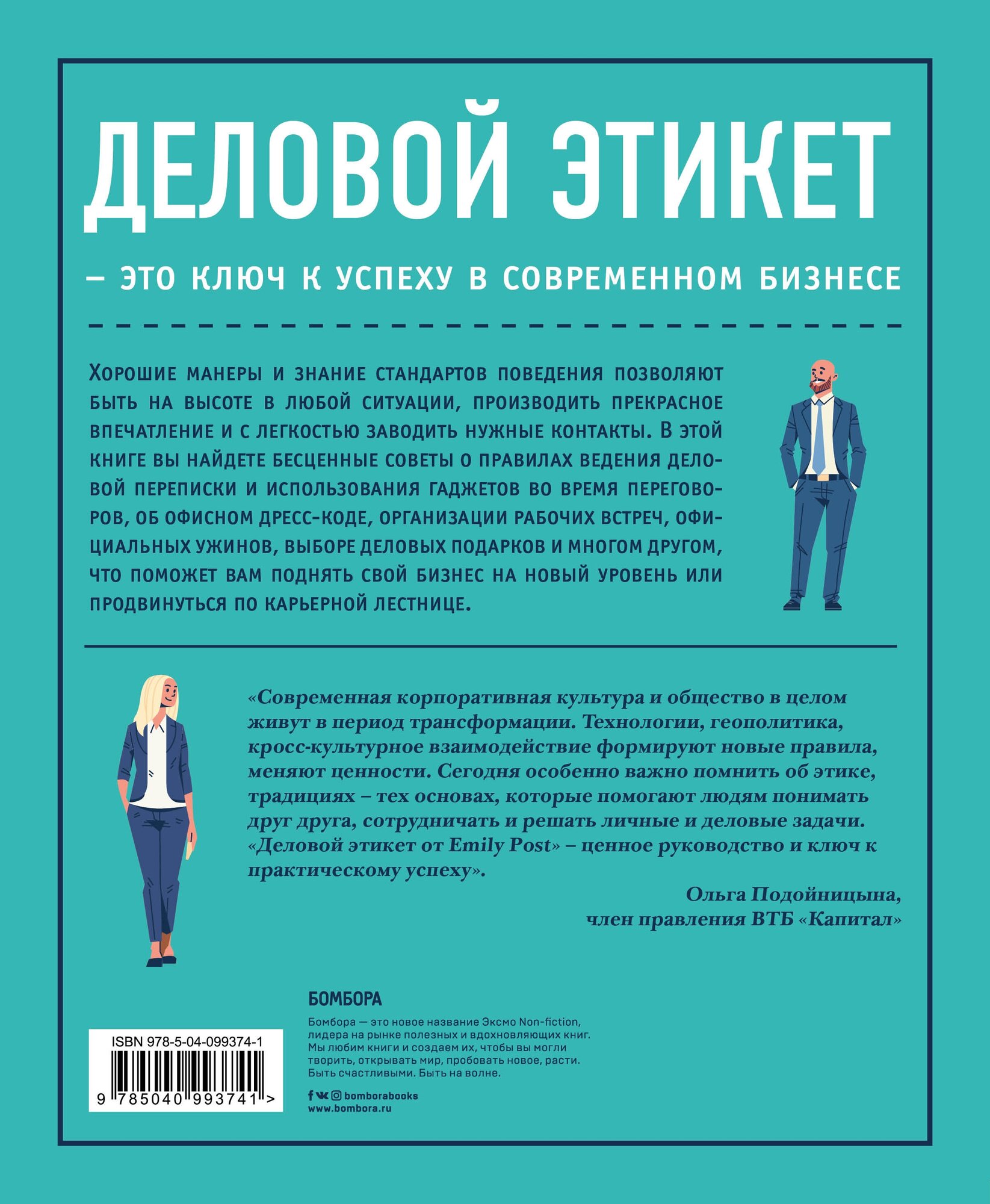 Если у вас есть автомобиль, то вы уже знакомы с понятием "Правила". Они значительно облегчают жизнь на дороге. Тот, кто их знает и уважает, может гораздо быстрее достичь своей цели. А это так важно в деловой сфере. Знание правил поможет избежать неловких ситуаций, быстрее наладить коммуникацию с партнерами и клиентами, да и просто быть "своим" в новой среде. Сейчас вопрос коммуникации стоит особенно остро. У каждого свой комп и появляются новые проблемы с навыками цифрового общения и с подачей информации в социальных сетях. Меняется сам взгляд на деловой этикет. Меняются люди, меняются и правила. В этой книге собрано много полезных советов: как поддерживать хорошие отношения с сотрудниками, как решать сложные этические проблемы, даются четкие рекомендации по деловым переговорам, составлению писем, встрече гостей, форме одежды, даже секреты сервировки стола... Большинство советов универсальны. Книга грамотно собрана по темам и будет полезна каждому, кто работает с людьми. Очень хороша для подарка, особенно студентам.