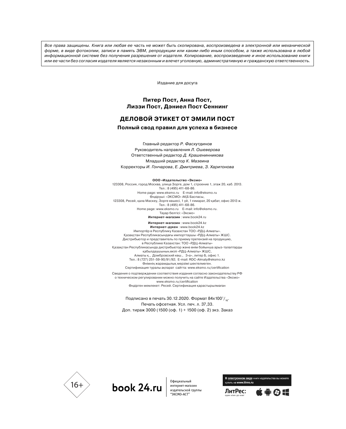 Деловой этикет от Эмили Пост. Полный свод правил для успеха в бизнесе (Новикова Татьяна Олеговна (переводчик), Пост Питер (соавтор), Пост Анна, Пост Лиззи (соавтор)); Эксмо, 2019