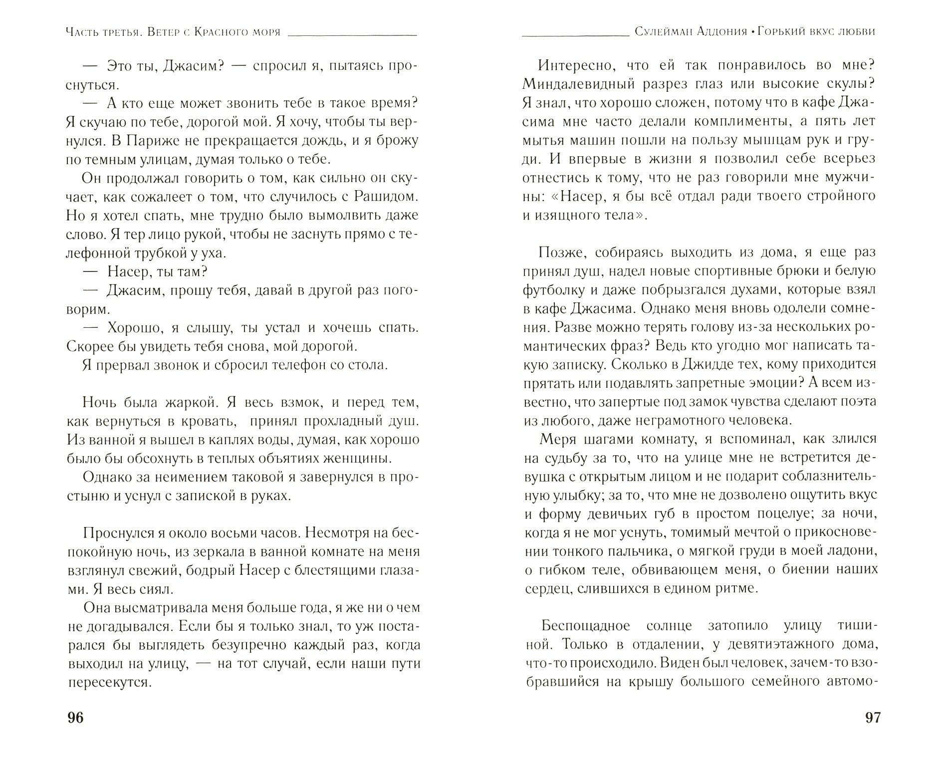 Роман переносит нас в Саудовскую Аравию, на раскаленные солнцем улицы Джидды. Религиозная полиция, насаждая жесткие законы шариата, пристально следит за моральным обликом правоверных мусульман: мужчинам и женщинам, не состоящем в браке, запрещено не только общаться, но даже перекинуться взглядом.