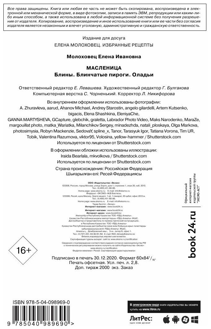 На сегодняшний день товар «Книга: Масленица. Блины. Блинчатые пироги. Оладьи (Молоховец Елена Ивановна); ООО "Издательство "Эксмо", 2019» можно купить с кешбеком в 4 магазинах: book24, Буквоед, Читай-город, Яндекс.Маркет
