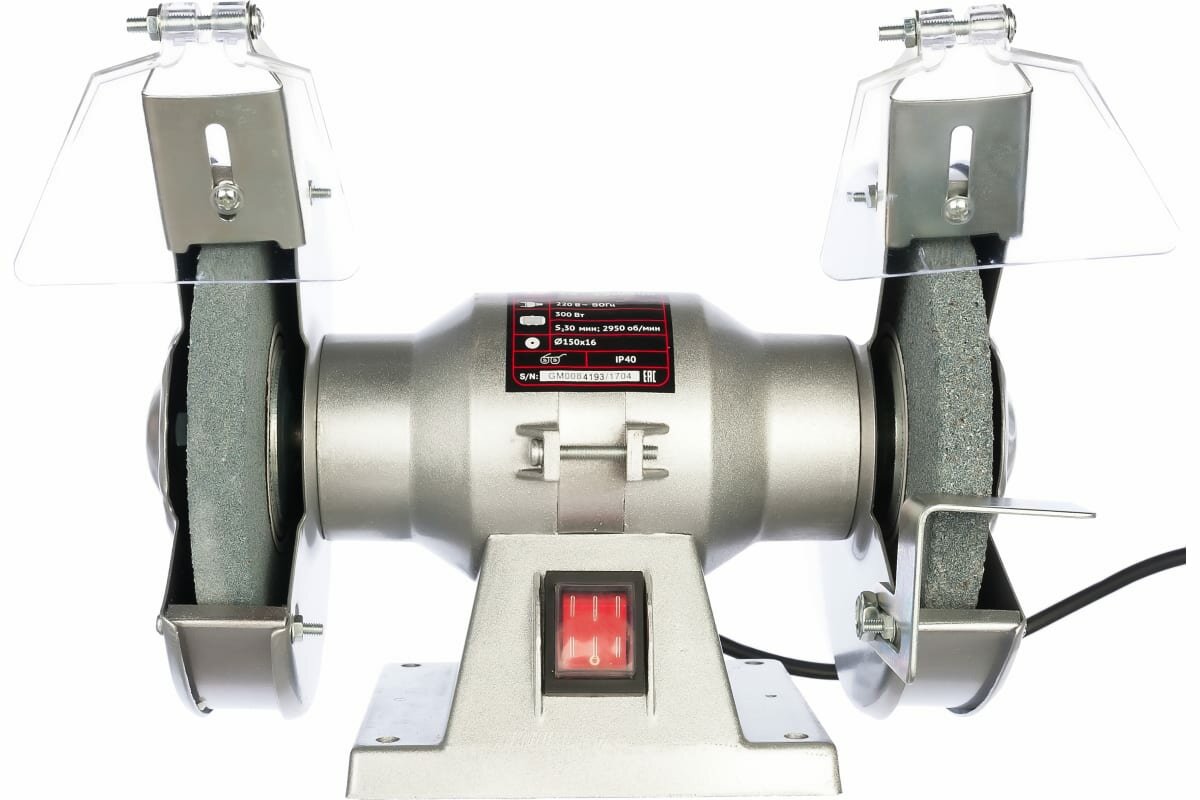 Точило электрическое Калибр используется в процессе обработки, шлифовки и заточки различных инструментов и предметов. Оно подходит для использования как в быту, так и в промышленных мастерских. Прибор имеет два точильных диска, защищенных прозрачной пластиковой заслонкой. Кнопка питания оснащается пылезащитным кожухом. Инструменту необходима мощность — 300 Вт, которая выдает 2950 вращений в минуту на холостом ходу.