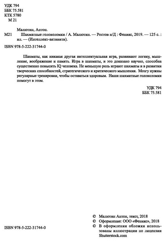 Книга: Шахматные головоломки (Антон Малютин); Феникс, 2019
