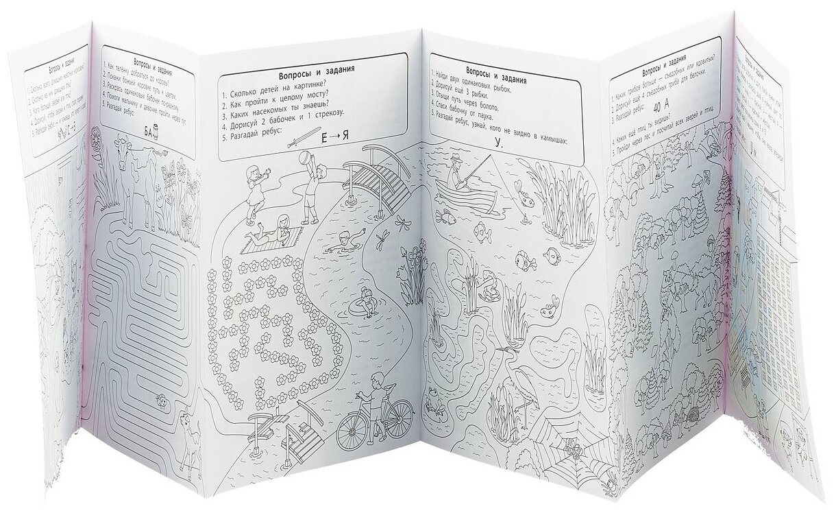 Увлекательное развитие! Путешествуя по страницам этой "гармошки", дети могут и поиграть, и порисовать, и придумать свою историю преодоления лабиринтов. А главное, необычный познавательно-развлекательный 1 метр заданий поможет маленьким путешественникам потренировать логику и внимание.