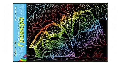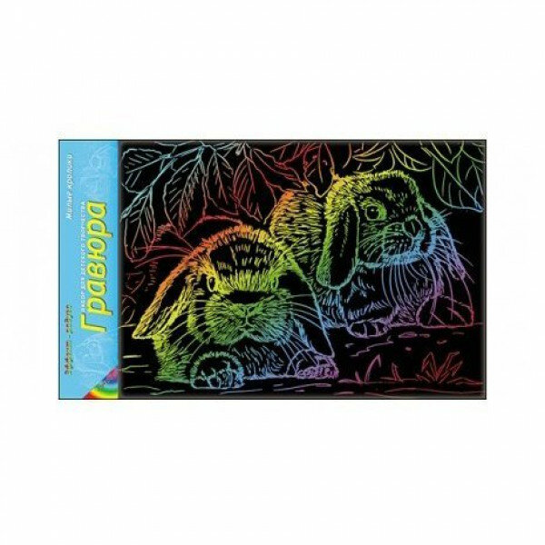 Набор для творчества "Милые кролики" от компании "Проф-Пресс" состоит из одной гравюры с радужным эффектом и штихеля. На черной поверхности гравюры имеет контур рисунка, по которому ребенок должен пройтись штихелем, чтобы проявить переливающееся всеми цветами радуги изображение двух кроликов. Обработанную гравюру можно использовать в детских играх или в качестве декоративного элемента. Комплект: основа с нанесенным контуром рисунка, штихель. Формат гравюры: А4.