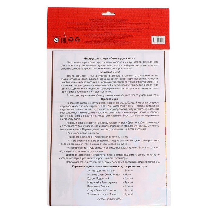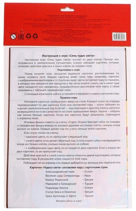Макси-игры «Семь чудесь света» - уникальная игрушка, которая неизменно будет радовать вашего ребенка, а также способствовать полноценному и гармоничному развитию его личности. В наборе: игровое поле, кубик, фишки.