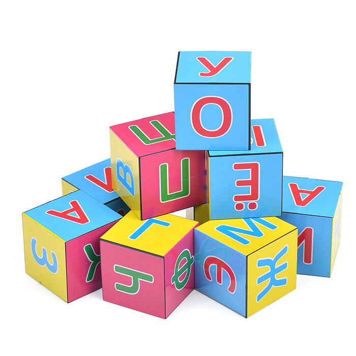 Кубики "Буквы" помогут дошколятам познакомиться с алфавитом и скорее его выучить. Они выполнены из разноцветного пластика и имеют достаточно крупный размер. На каждой грани кубика нарисована буква из русского алфавита. Малыш сможет строить из кубиков башенку и, одновременно, потихоньку изучать буквы, а может, даже составлять из них простые слова.