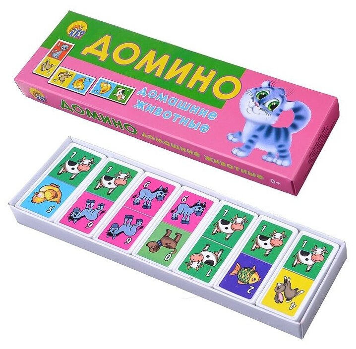 | Состав набора | 28 пластиковых фишек домино с картинками |