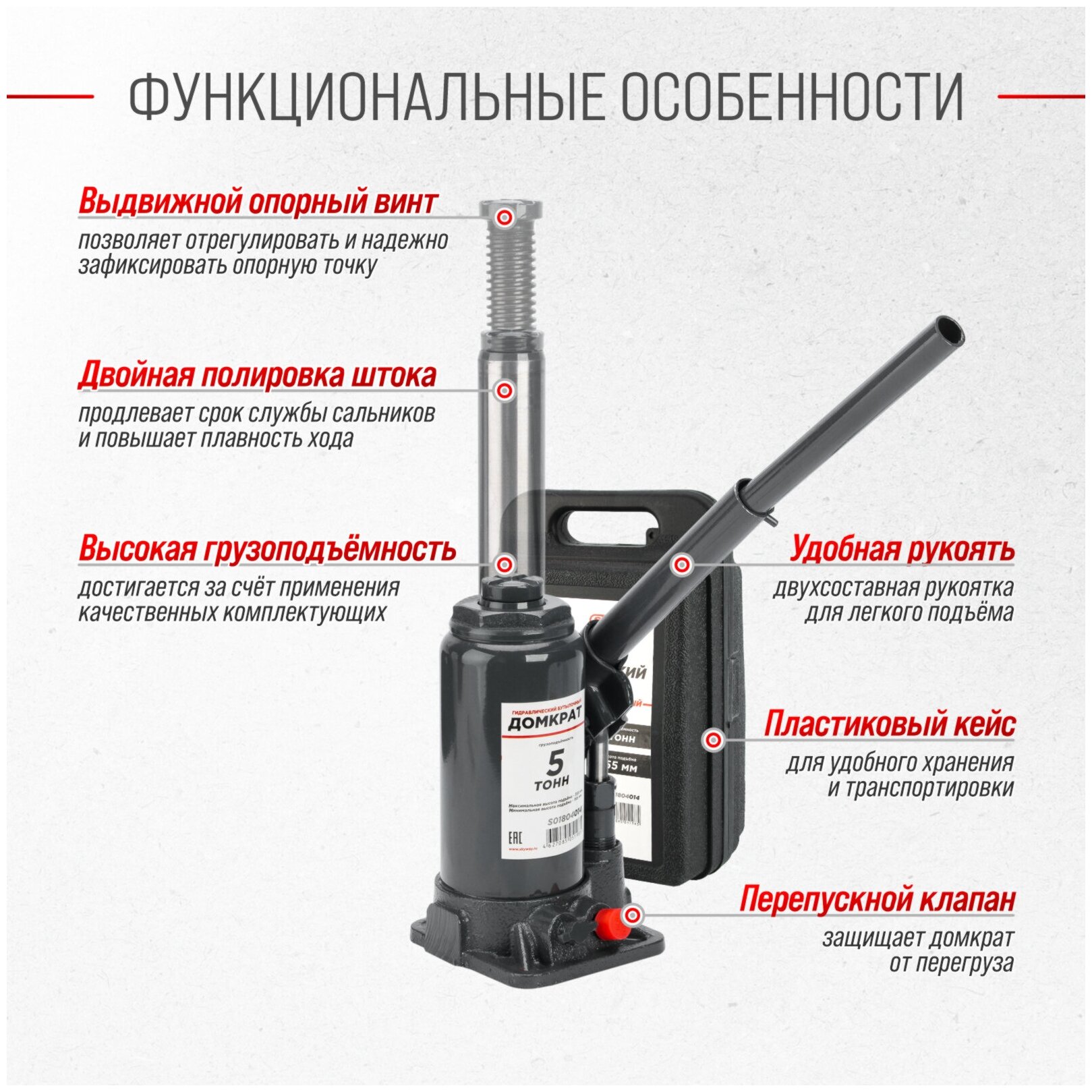 | Комплектация | домкрат - 1 шт; кейс - 1 шт |