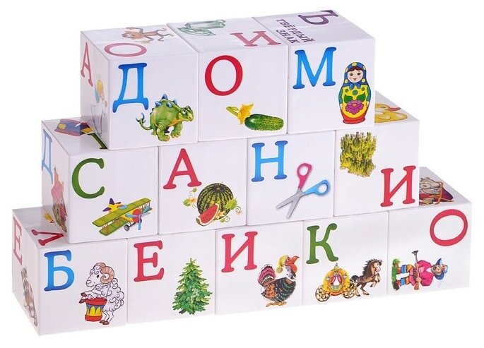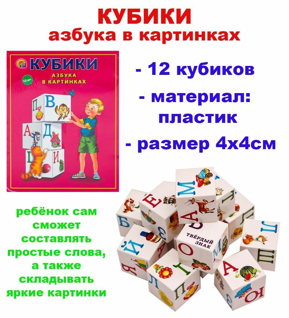 | Состав набора | 12 пластиковых кубиков с картинками |