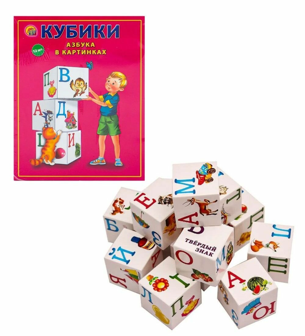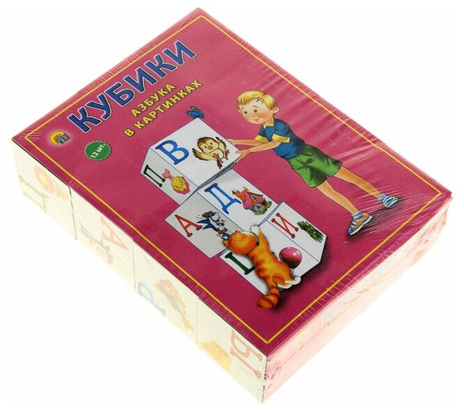 Набор кубиков "Азбука в картинках" позволит ребенку изучать алфавит русского языка в увлекательной игровой форме. На гранях кубиков изображены не только сами буквы, но и наглядные картинки предметов, которые начинаются с этих букв. Играя с кубиками, ребенок сможет составлять слова, пополняя таким образом свой словарный запас.