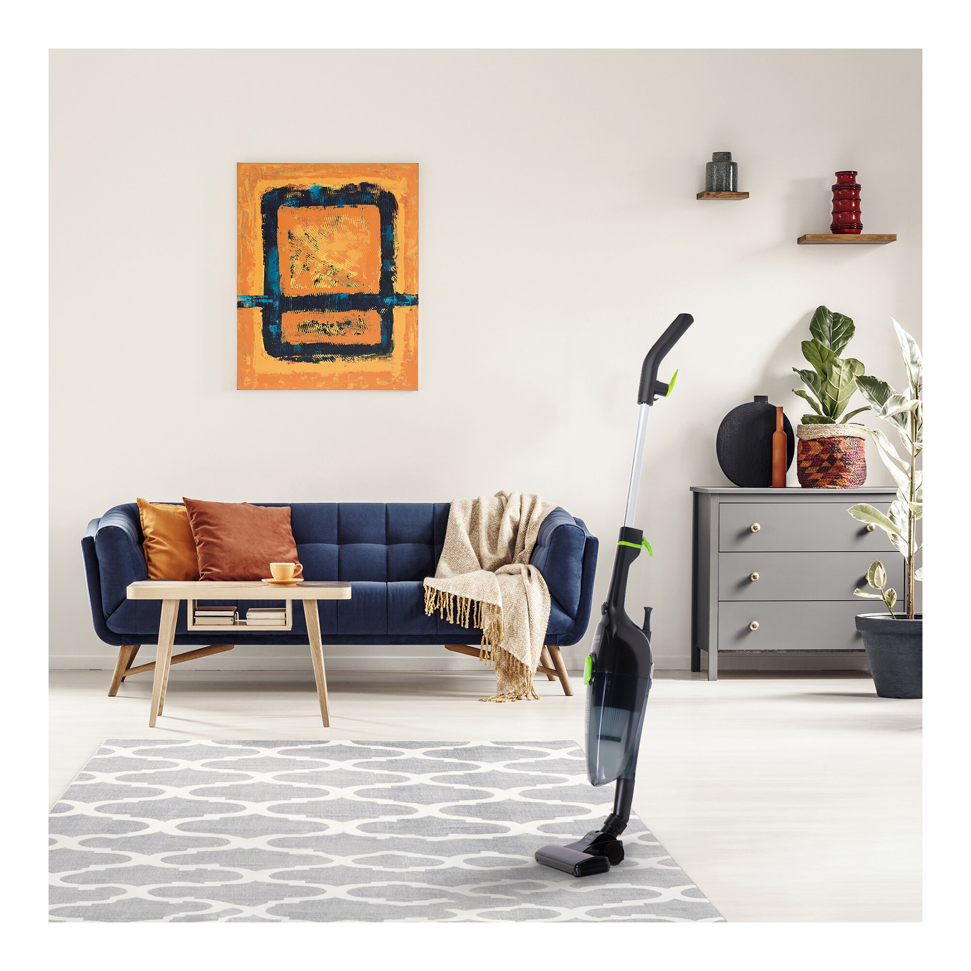 Вертикальный пылесос cделает уборку квартиры легким и приятным занятием. Модель предназначена для ежедневной уборки. Работает прибор от обычной розетки. Благодаря длинному (5 м) сетевому шнуру вы сможете добраться до любого места в комнате. Оптимальная мощность мотора (1000 Вт) и всасывания (200 Вт) поможет снизить потребление электроэнергии, сохранив ваш бюджет. Пыль, грязь и другой мусор скапливаются в прозрачном пластиковом пылесборнике, объем которого составляет 0,8 л. Модель имеет встроенную трехступенчатую систему фильтрации с HEPA-фильтром.