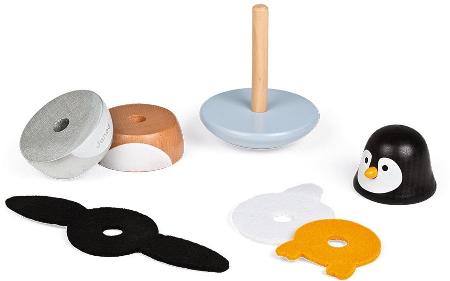 Мне хотелось купить для своей дочурки какую-то развивающую игрушку и я решила выбрать этого прикольного пингвина от Janod. Пирамидка выглядит мило и понравится любому ребенку. Действительно развивает воображение, мелкую моторику рук и логическое мышление. Краска со временем не стирается, пластик реально прочный.