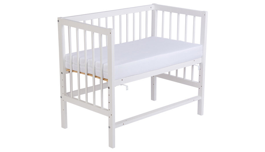 - Маленькая, аккуратная, стильная. Приставная, есть специальные крепления для фиксации к родительской кровати.