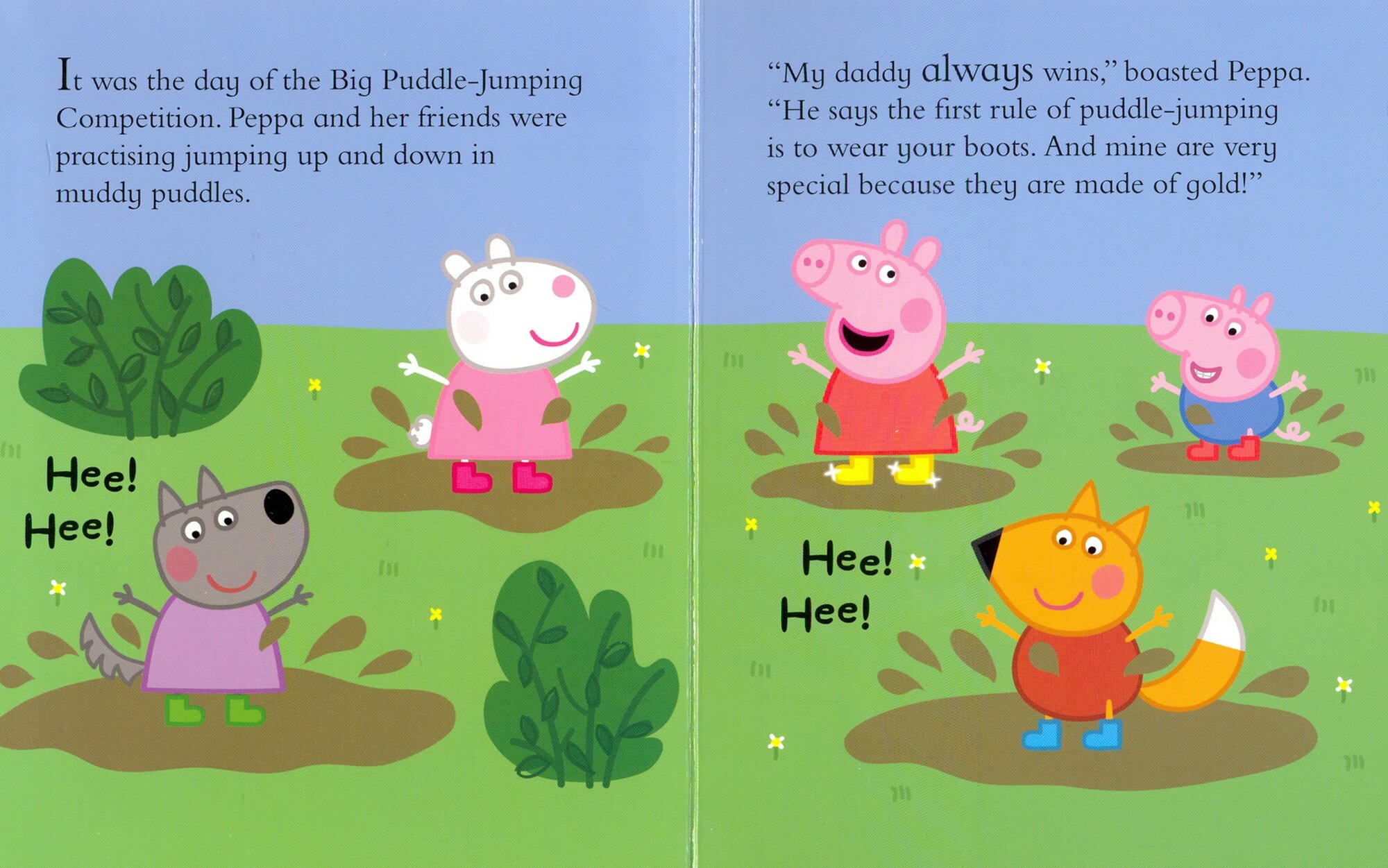 Poor Peppa! Mrs Duck has stolen Peppa's special golden wellies and now she can't compete in the Puddle-Jumping Competition! Can Peppa and her friends get the golden wellies back in time?