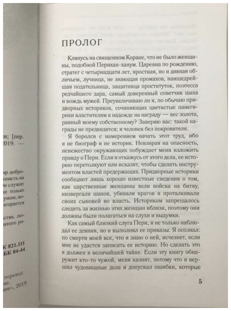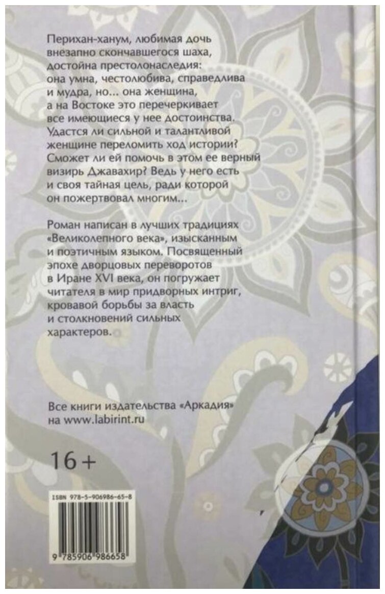 Вполне интересный исторический роман. Вернее, историко-приключенческий. Это одновременно и его достоинство, и недостаток. Основное содержание романа - придворные интриги. Главная героиня - царевна Перихан, умная и амбициозная женщина, которая хочет добиться власти любой ценой. Впрочем, ею движут благие намерения : она понимает, что ее братья не особенно умны и что она сама бы справилась с управлением страной лучше их. Читать, безусловно, интересно, как интересно читать любой роман о заговорах, дворцовых переворотах и интригах, так что любителям жанра рекомендую. Но максимальный балл я бы за книгу не поставила. Сюжет какой-то однобокий. Автор сосредоточилась исключительно на дворцовых интригах( разумеется, вымышленных), а образ реальной средневековой Персии с ее историческими реалиями, жизнью обычных людей разных сословий отсутствует. Как будто за пределами дворца нет жизни...В итоге, хоть Перихан и реально существовавшее лицо, складывается впечатление , что читаешь сказку.