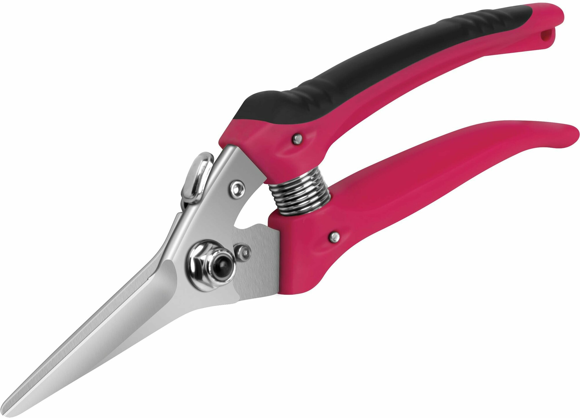 Ножницы садовые для цветов . Лезвия из высококачественной стали Лёгкий чистый рез (острая режущая кромка). Надёжный фиксатор (безопасность в закрытом положении). Эргономичные рукоятки Ремешок для переноски. Основные виды работ: срезание плодов, работа в саду, хозяйственные нужды.