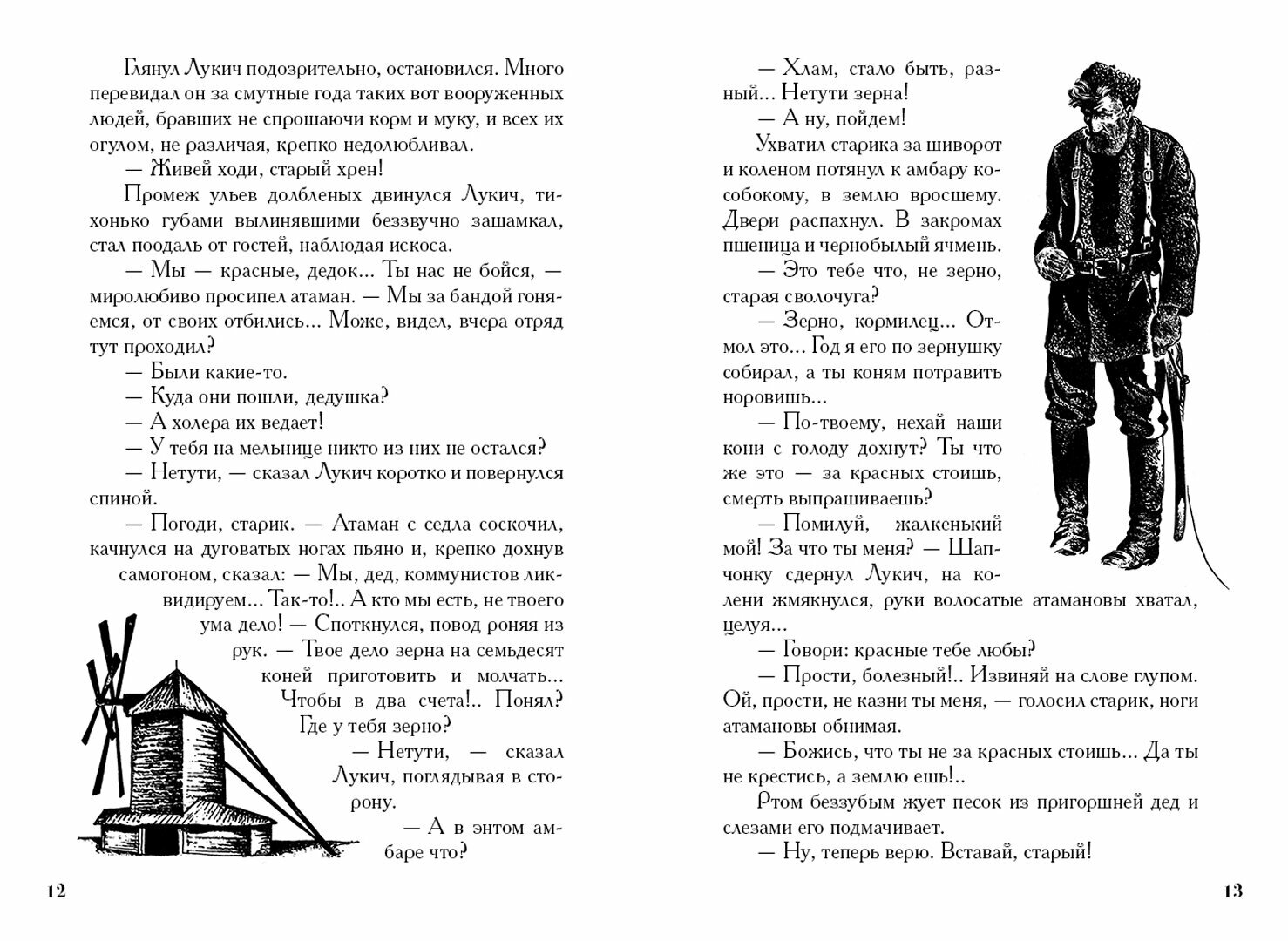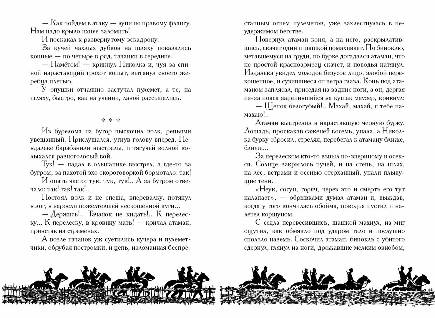 Иллюстраций очень много, полностраничных, на четверть страницы, заставок… Огромная портретная галерея героев на фоне станичного быта, разрушенного войной и революцией, на фоне эпохи… -