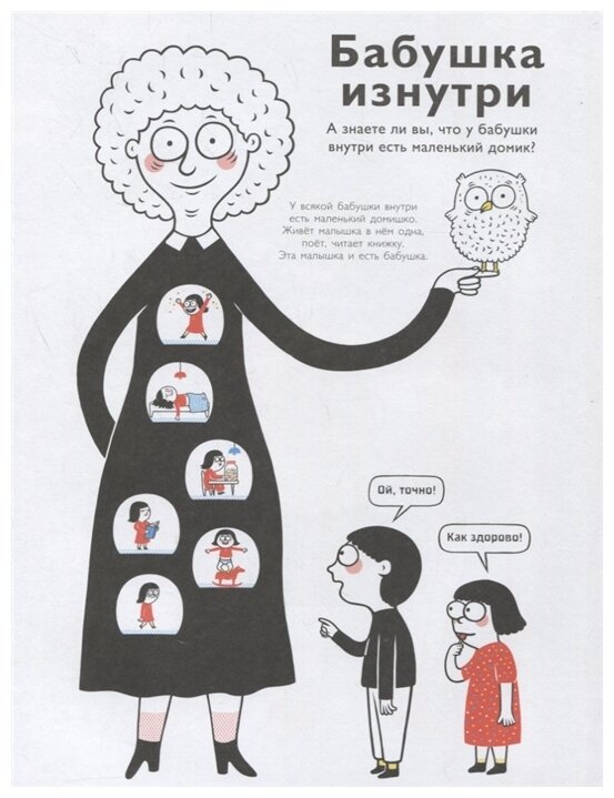 Привлекла внимание яркая обложка - взяли, что называется, "до кучи". И эта книжка оказалась чуть ли не лучшей из заказа! Это просто очень смешно - сначала хохотали мы с женой, потом 8-летний сын. Настоящий путеводитель по миру бабушек! Юмор, хоть и несколько необычный, но добрый. В нашем случае, книга скорее про нашу прабабушку - бабушка у нас ещё совсем молодая. Хотя и про таких, современных и стильных "бабуль", в книге тоже есть :) Книга-прикол, мы такие любим - однозначно рекомендовано к покупке!