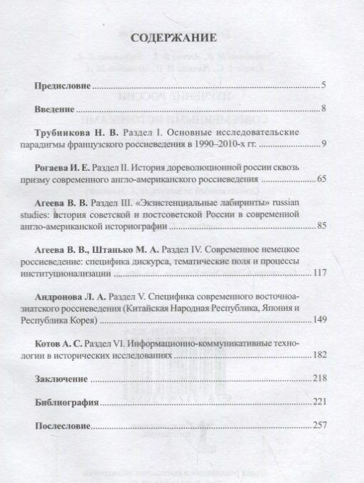 Представленная коллективная монография посвящена анализу исследовательских практик современного мирового россиеведения. Исследование, основанное на тщательном изучении трудов зарубежных ученых, комплексно освещает современное состояние Russian studies в различных странах. Авторами проанализированы труды французских, англо-американских, немецких историографов, а также состояние русистики в ряде азиатских государств, что позволяет создать комплексное видение всех направлений современной русистики, выработать обобщенное историографическое представление по данной проблематике.