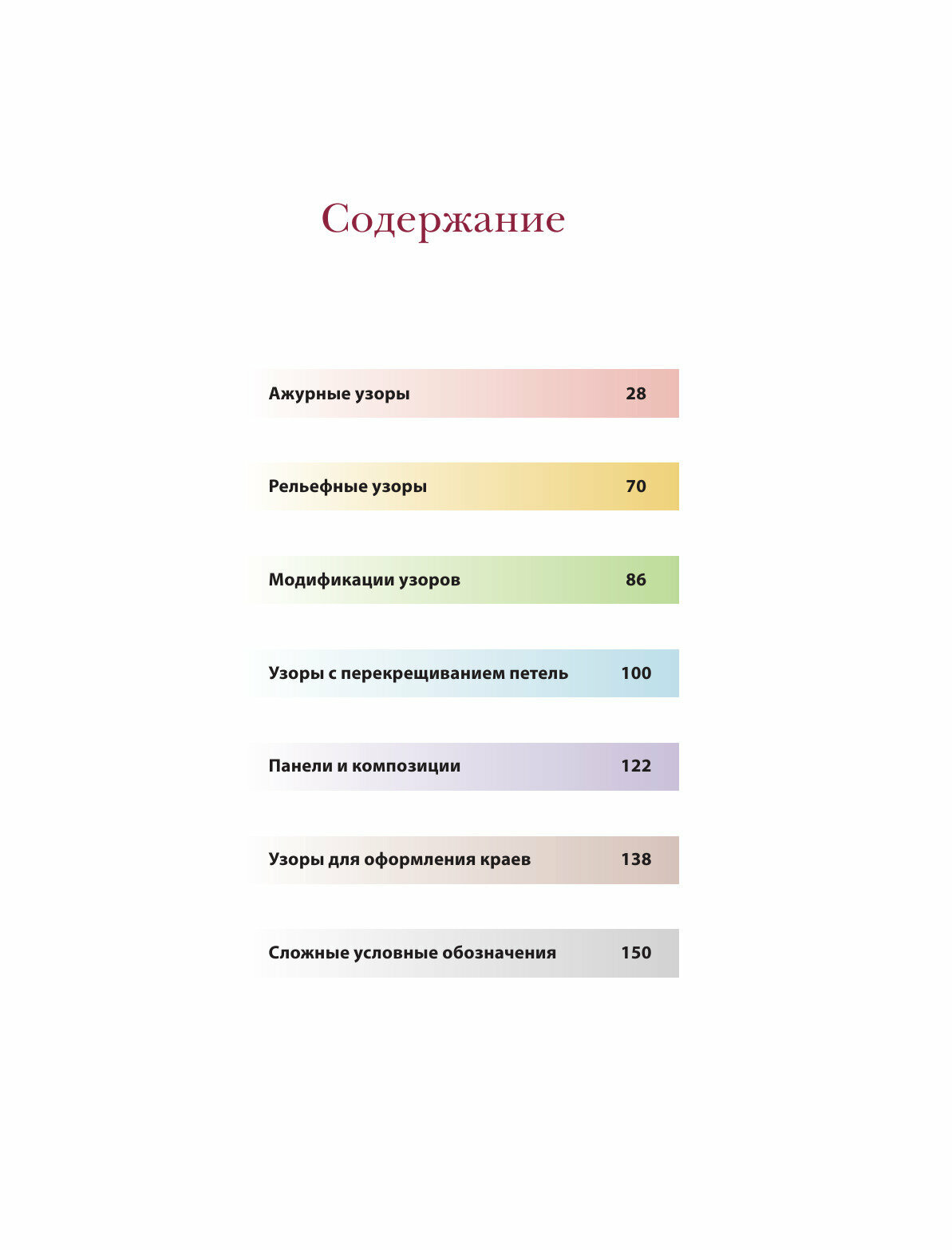 Книга предназначена для тех, кто постоянно находится в творческом поиске, для работы с ней достаточно даже начальных навыков вязания и немного усилий. Внятные и четкие схемы, необходимые пояснения в местах, где это необходимо, интуитивно понятная система условных обозначений, узоры всех видов, от ажуров до бордюров, удобный учебный раздел. Формат книги специально подобран так, чтобы представить схемы в оригинальном размере и при этом ею было удобно пользоваться и ставить на полку.